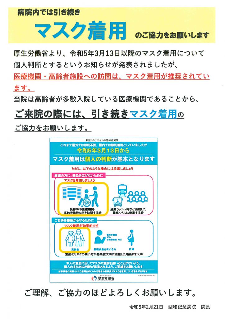3月13日以降も病院内はマスクの着用をお願いいたします。
