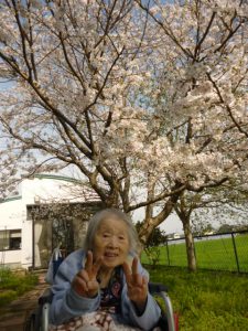 3月27日 ハーモニー聖和敷地内にある桜の木の下でお花見をしました。