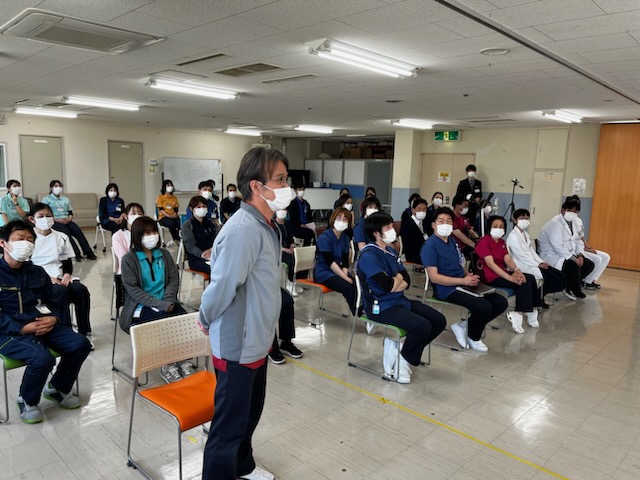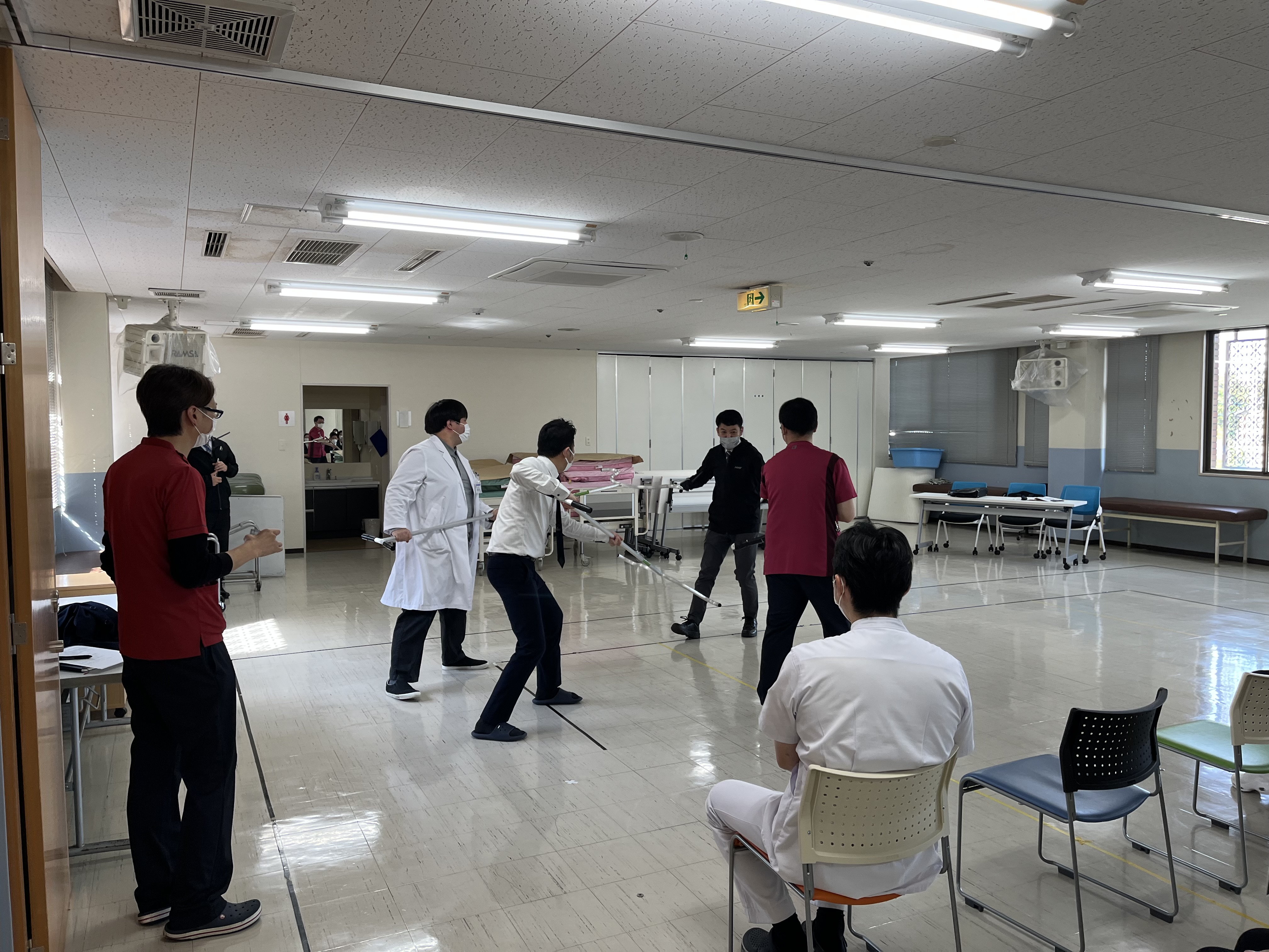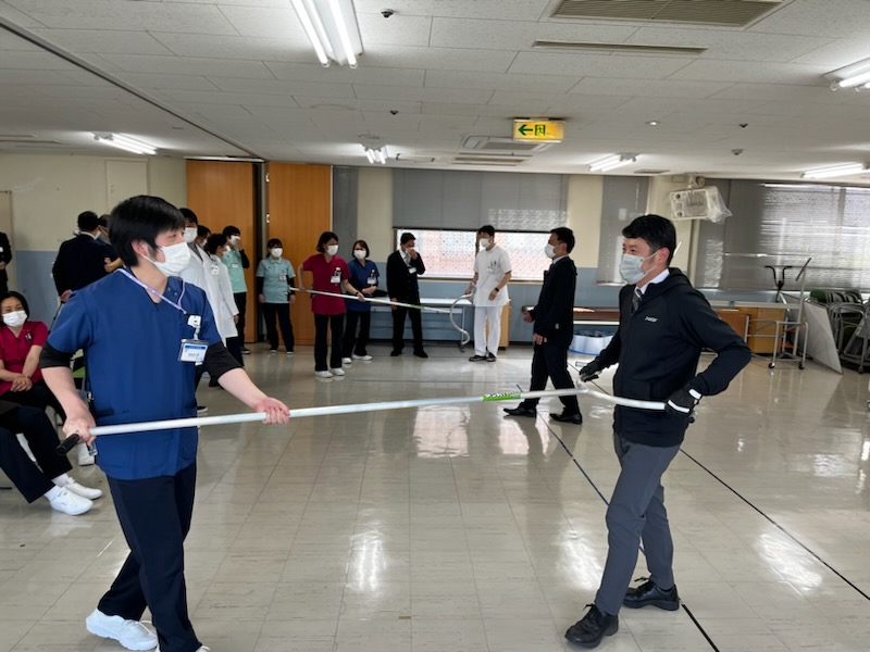 刺股講習会🚓 みなかぜ病院 2023/05/08 12:12 2023年4月10日、糸島警察署のご協力のもと、さすまた講習会を実施していただきました。 2022年6月の医師刺傷事件を受け、みなかぜ病院でも防犯対策としてさすまたを設置し対策を行っていました。 糸島警察の方より、実際のさすまたの使用方法の指導を受々な話を聞くことができました。 今後も患者さまの安全を第一に防犯対策に努めます。 次の記事へ 一覧に戻る 前の記事へ