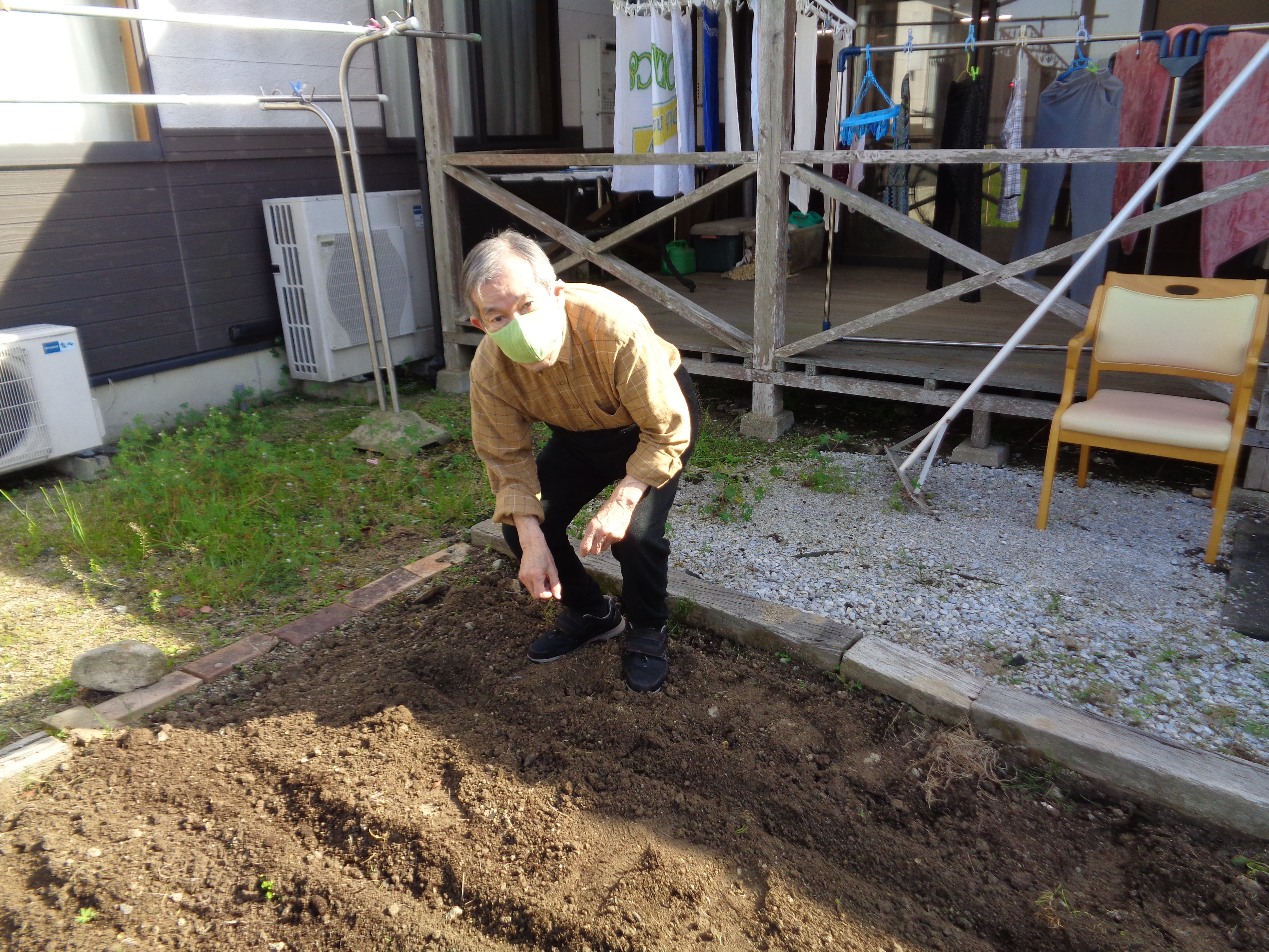 五月になり暖かい日が増えてきたので、お天気のいい日に、おもやいでは種まきを行いました。