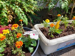 4月8日(土)、法人が支援をしている「津古ふるさと会」主催のマリーゴールドポット苗づくりに参加し、その際たくさんの苗をいただきました。