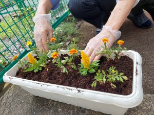 4月8日(土)、法人が支援をしている「津古ふるさと会」主催のマリーゴールドポット苗づくりに参加し、その際たくさんの苗をいただきました。