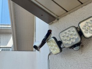 また、プランターの設置作業をしていると、玄関の柱にツバメの巣を発見しました。
