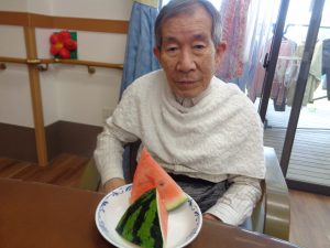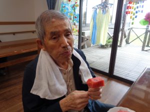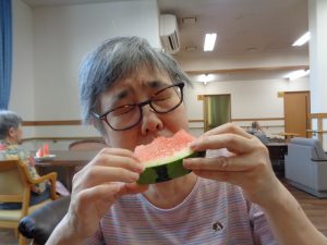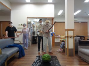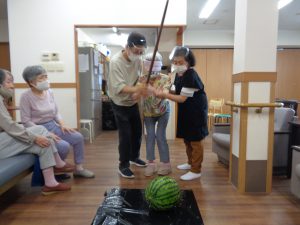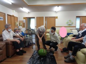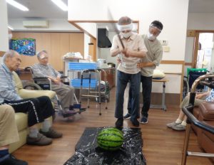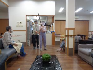 おもやいではスイカ割り大会を行いました。