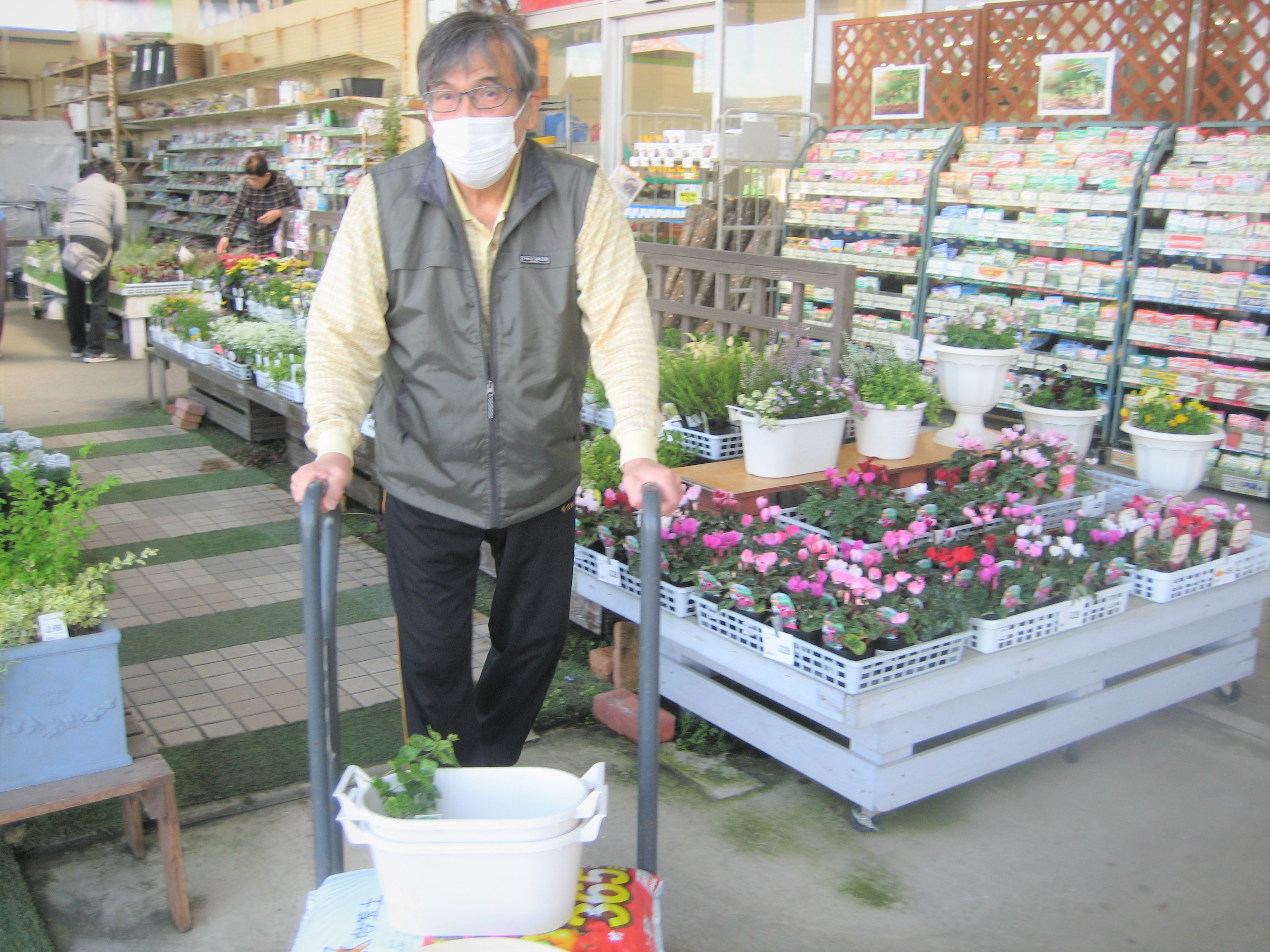 先日皆さんとおやつ買い物に出掛けた際にお花を買ってきましたが、お花が足りない!との事で、近くのホームセンターに花を買いに出かけました~🚙