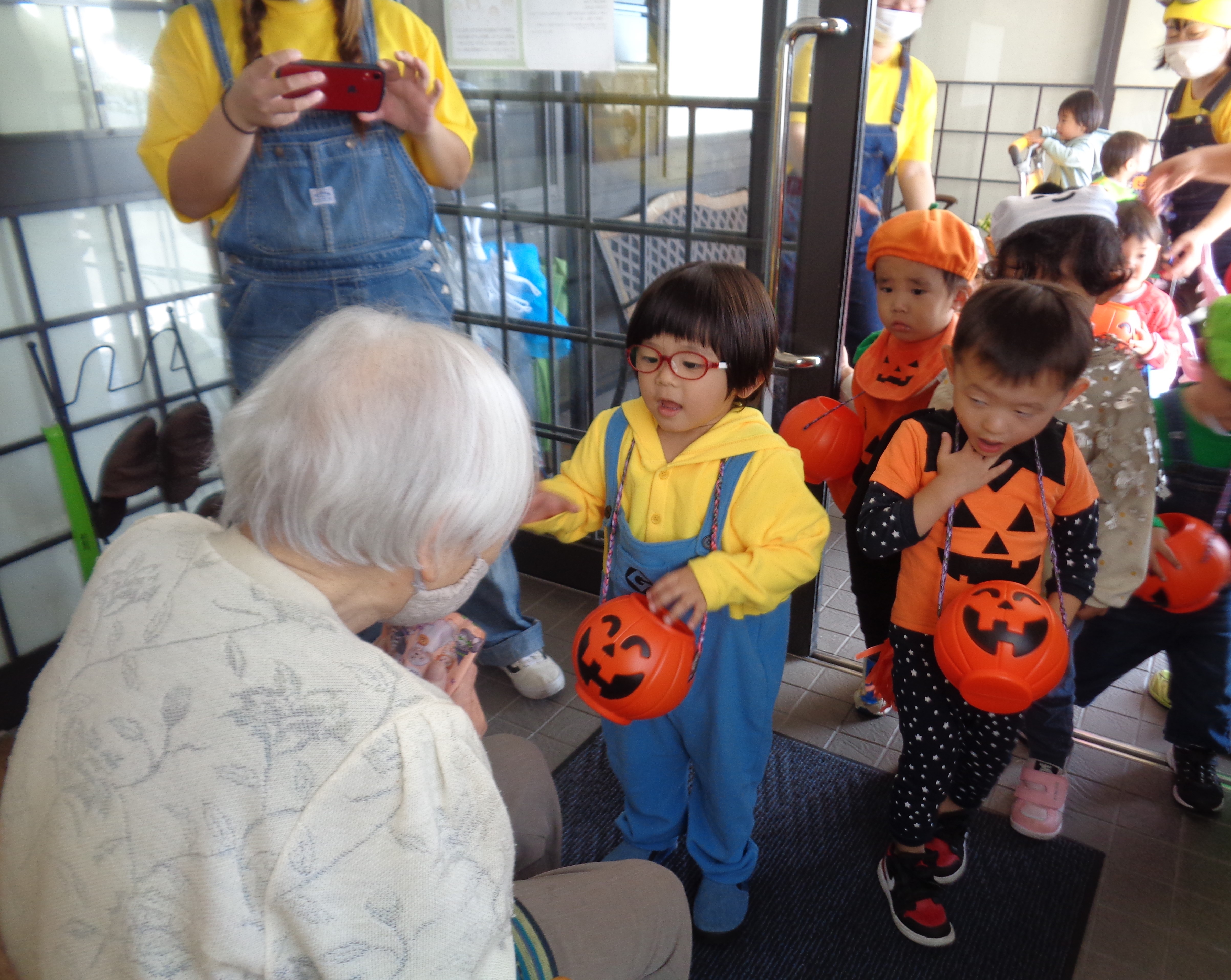 ハロウィンの日、おとのわ保育園より仮装した子供たちが遊びに来てくれました。