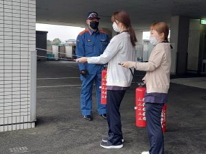 消防署の方々に訓練の様子を見ていただき、訓練後に良かった点や改善点などを評価していただきました。