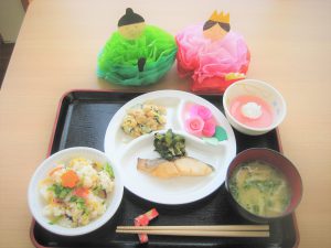 3月と言えば…。そう、桃の節句🍑「雛祭り」ですね! 日和ではお昼ご飯に”雛祭りメニュー”をご提供させて頂きました(*^^*)