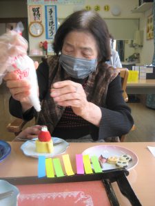 明かりをつけましょぼんぼりに~♫お花をあげましょ桃の花~♪♬ 皆さんと”うれしいひな祭り”の歌を歌いながら、ご自分で作ったケーキを堪能されていました💛