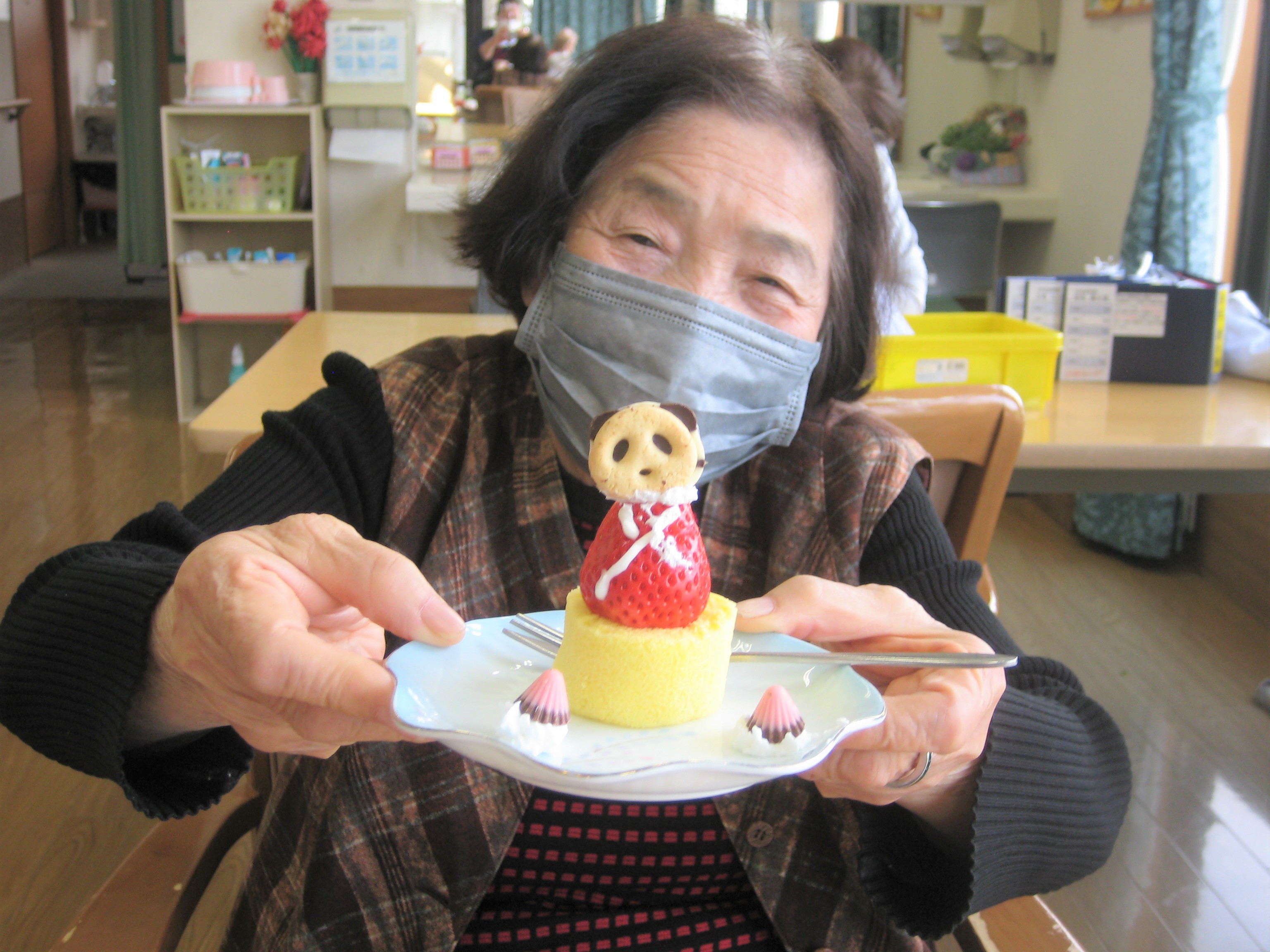 明かりをつけましょぼんぼりに~♫お花をあげましょ桃の花~♪♬ 皆さんと”うれしいひな祭り”の歌を歌いながら、ご自分で作ったケーキを堪能されていました💛