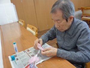 こちらは、ひな祭りの飾りつけで桃の花をイメージしながら作っているところです🌸