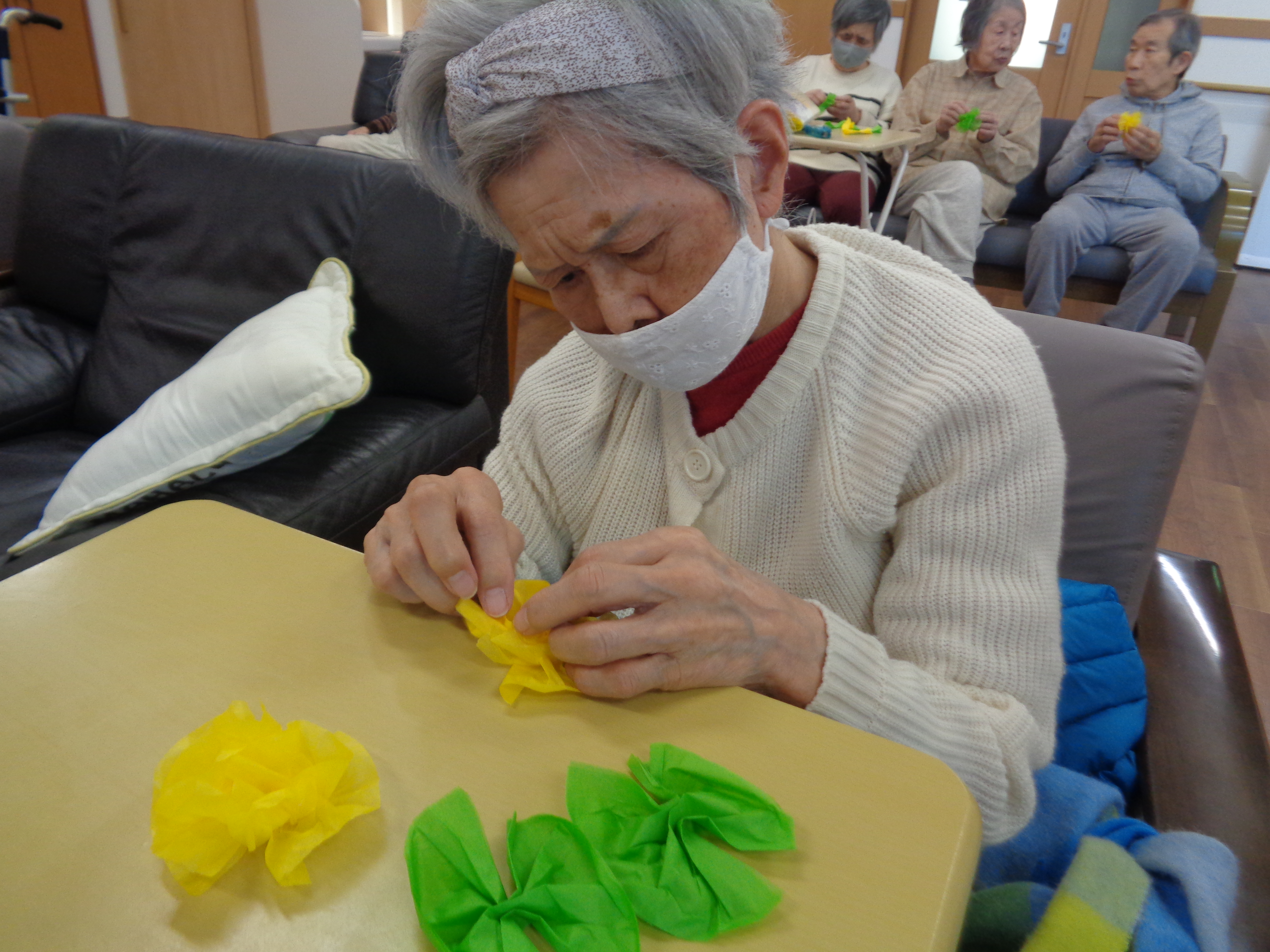 こちらは、ひな祭りの飾りつけで桃の花をイメージしながら作っているところです🌸