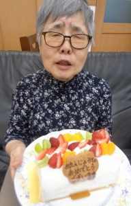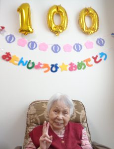 O様、100歳に(*^^*)誕生日にはご家族の方と一緒にお祝いされ喜ばれる姿がありました(^^♪