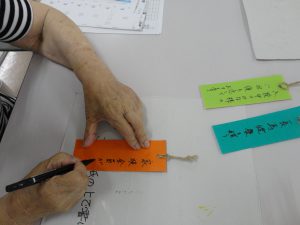 ご家族の健康や他の患者さんの回復のことなどを願われている短冊があり心温まります。