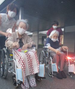 9月2日(月)の夕食後、ユニット棟の入所者の方と花火大会を行いました