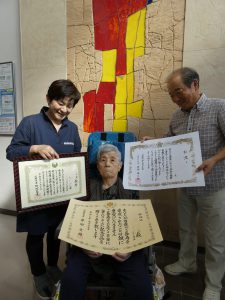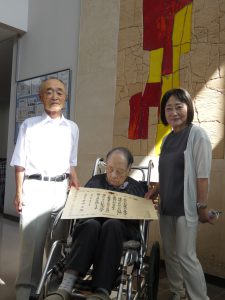 今年100歳を迎えられる方の長寿を祝い、お祝い状と記念品が贈呈されました。