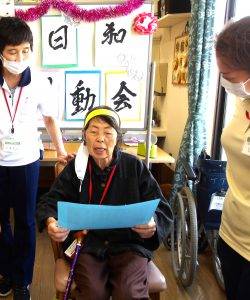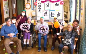 今回の運動会は、ハーモニーに入所されているユニット棟の3名の方と、その職員さんにも一緒に参加して頂き、交流会の意味合いも込めて、日和VSユニットのチーム対抗戦となりました!
