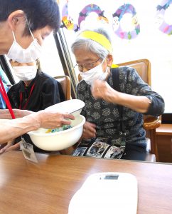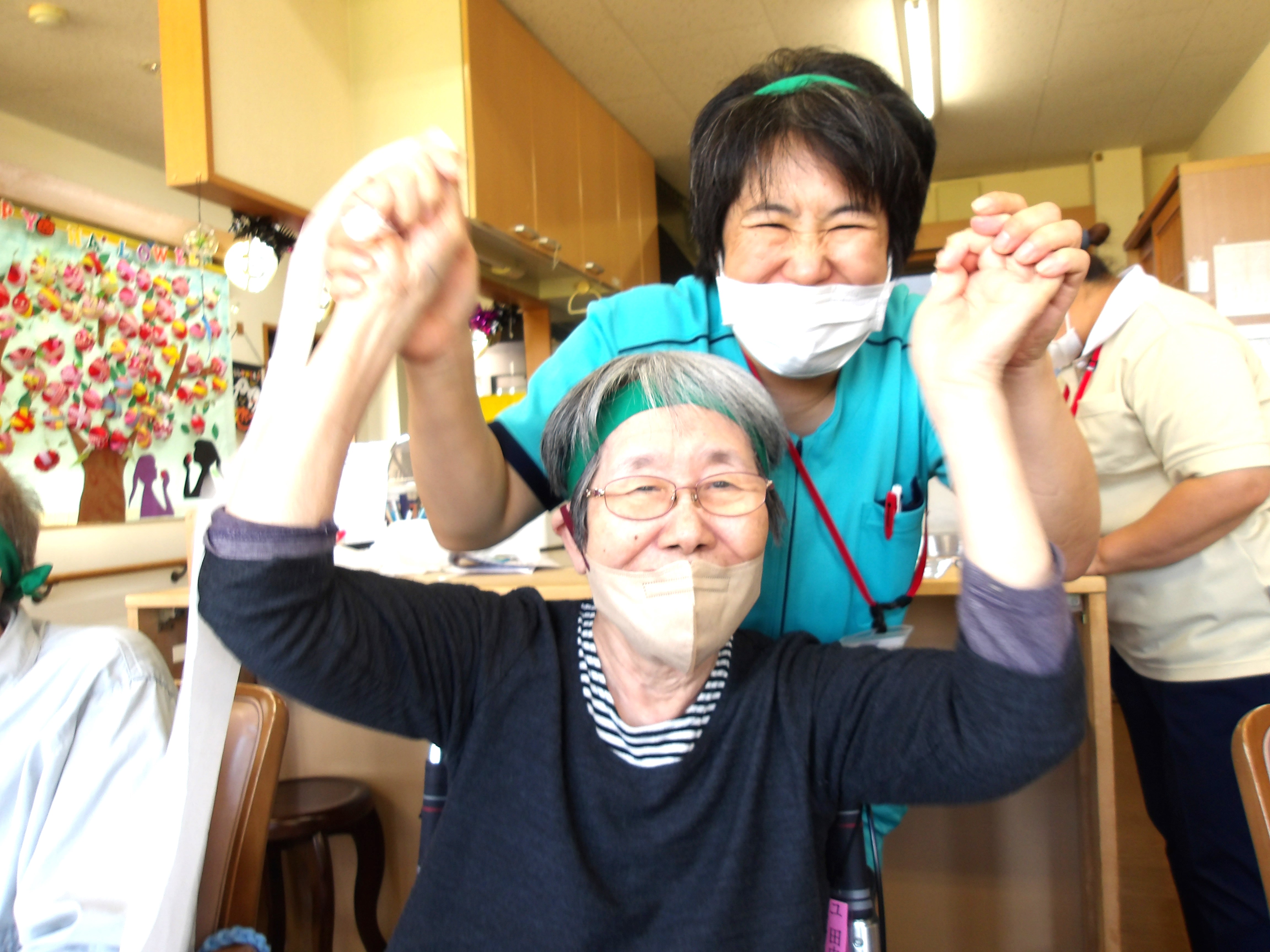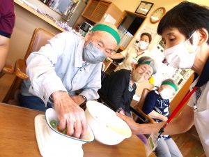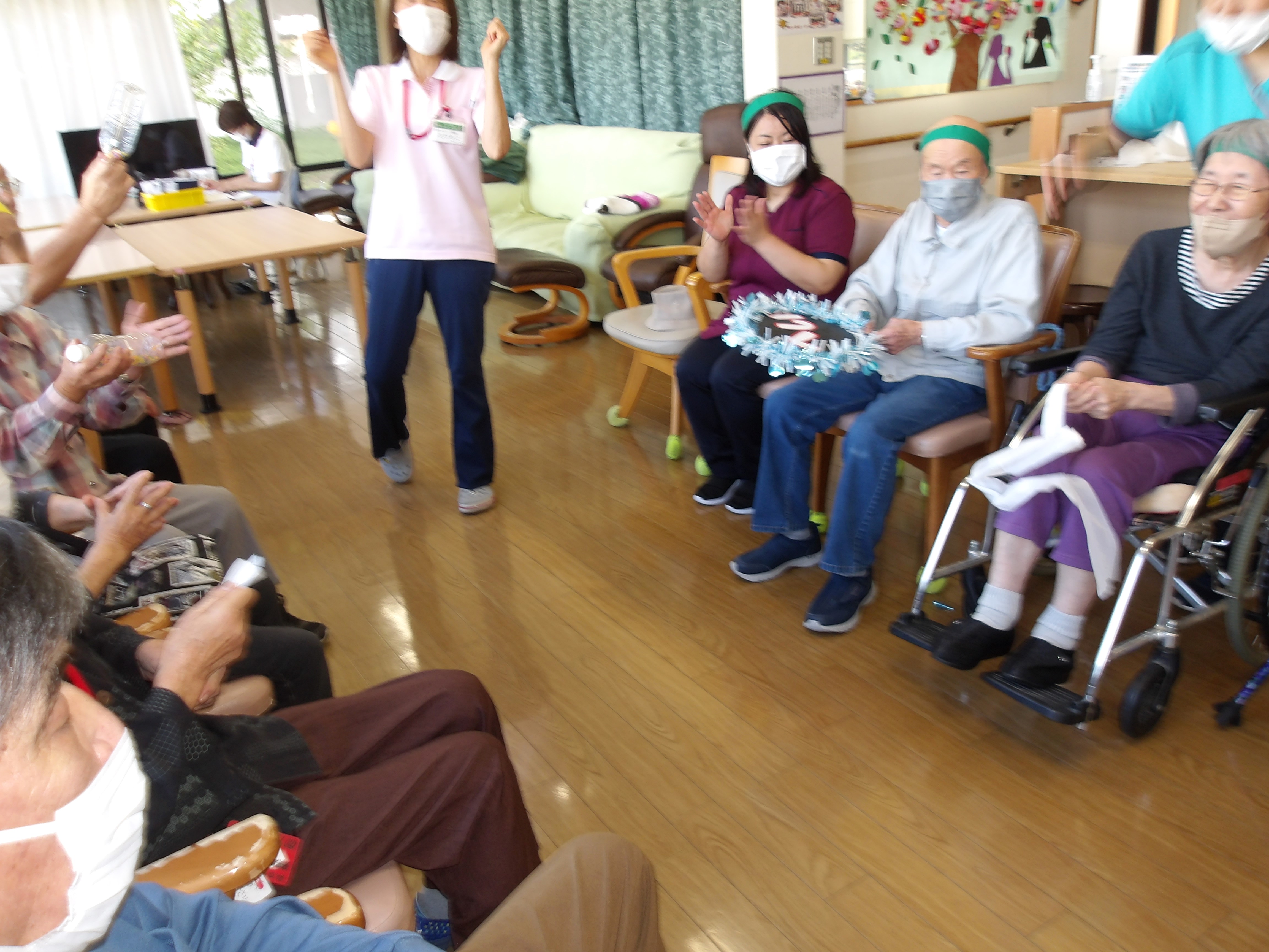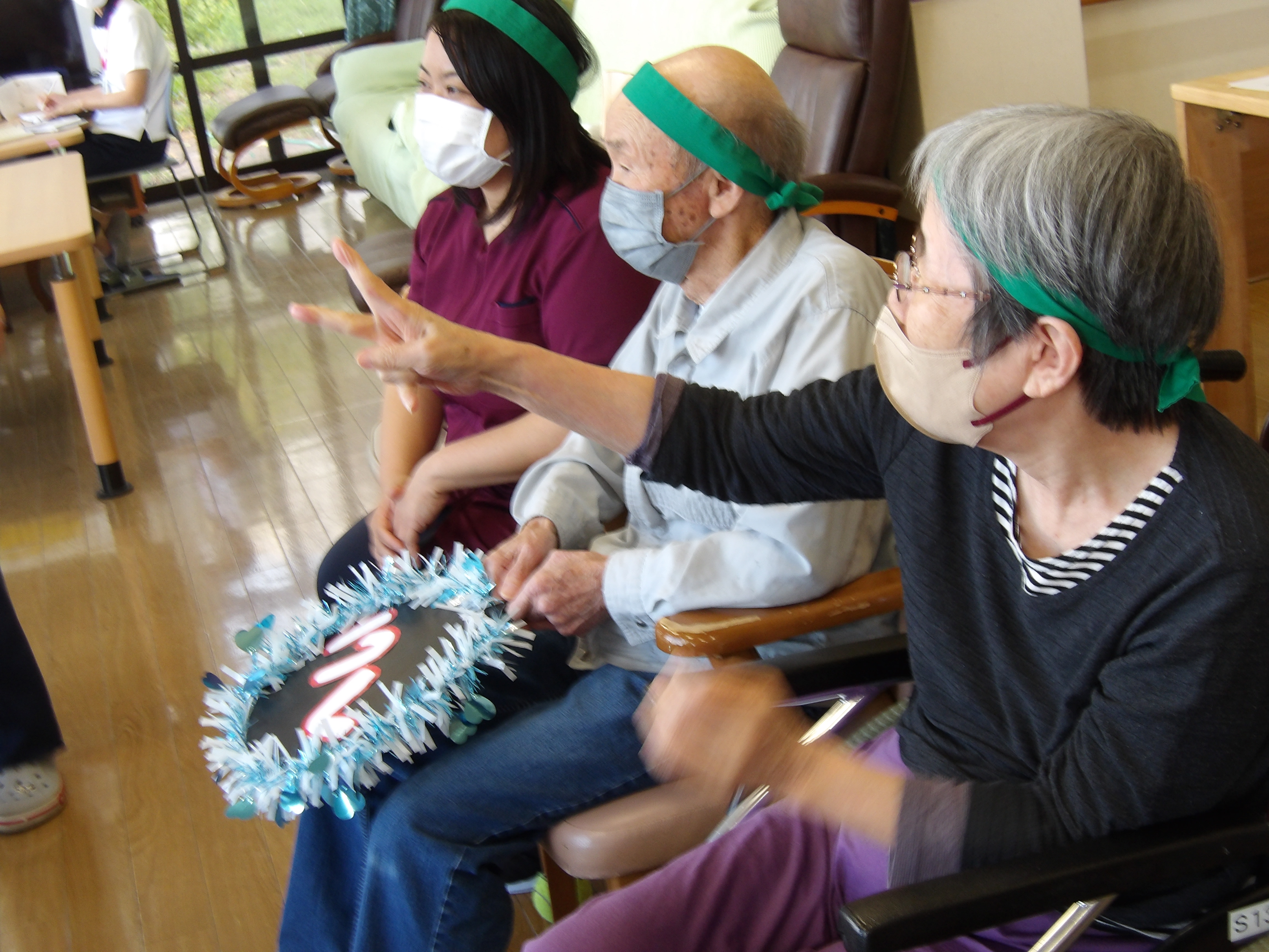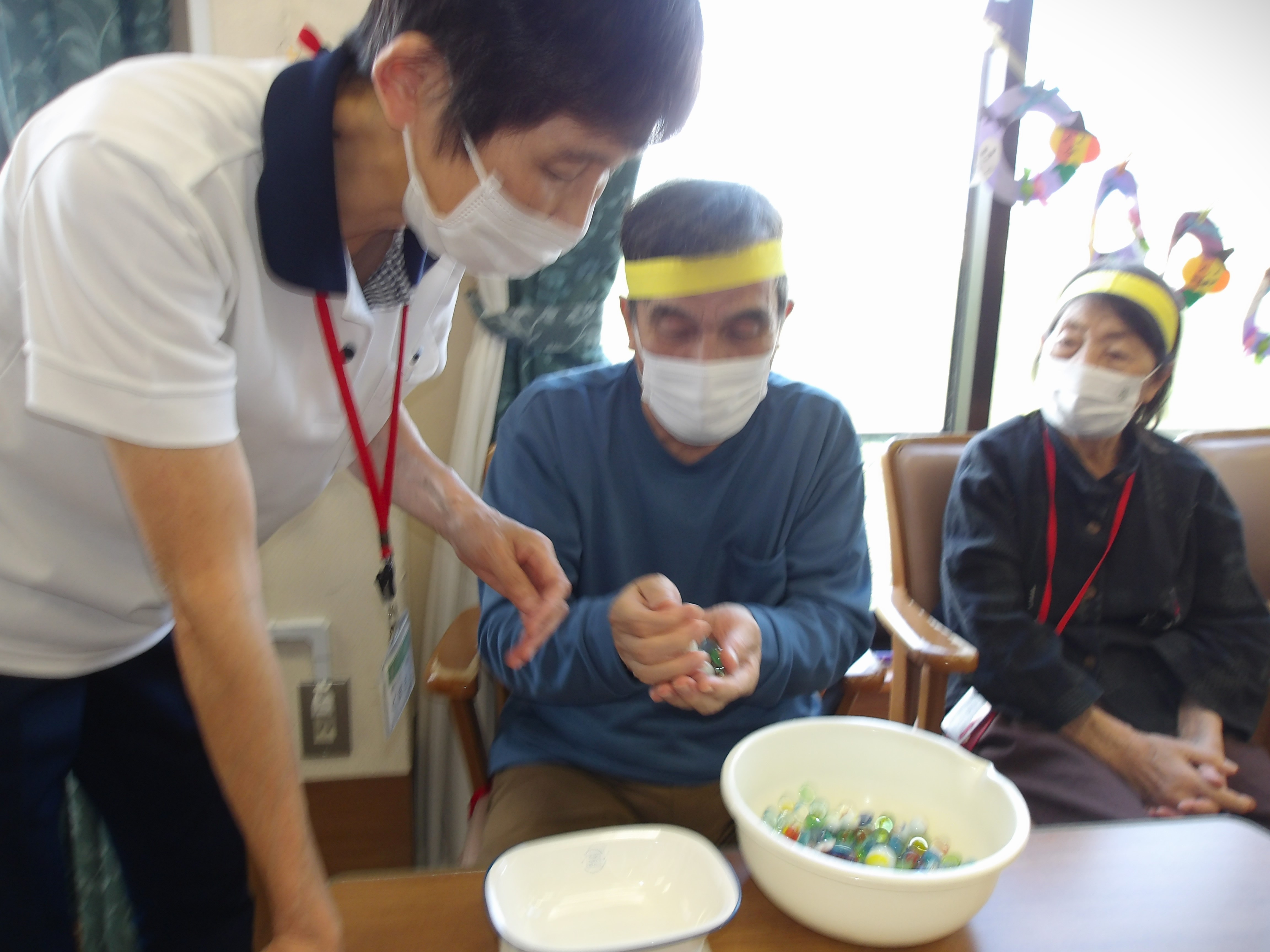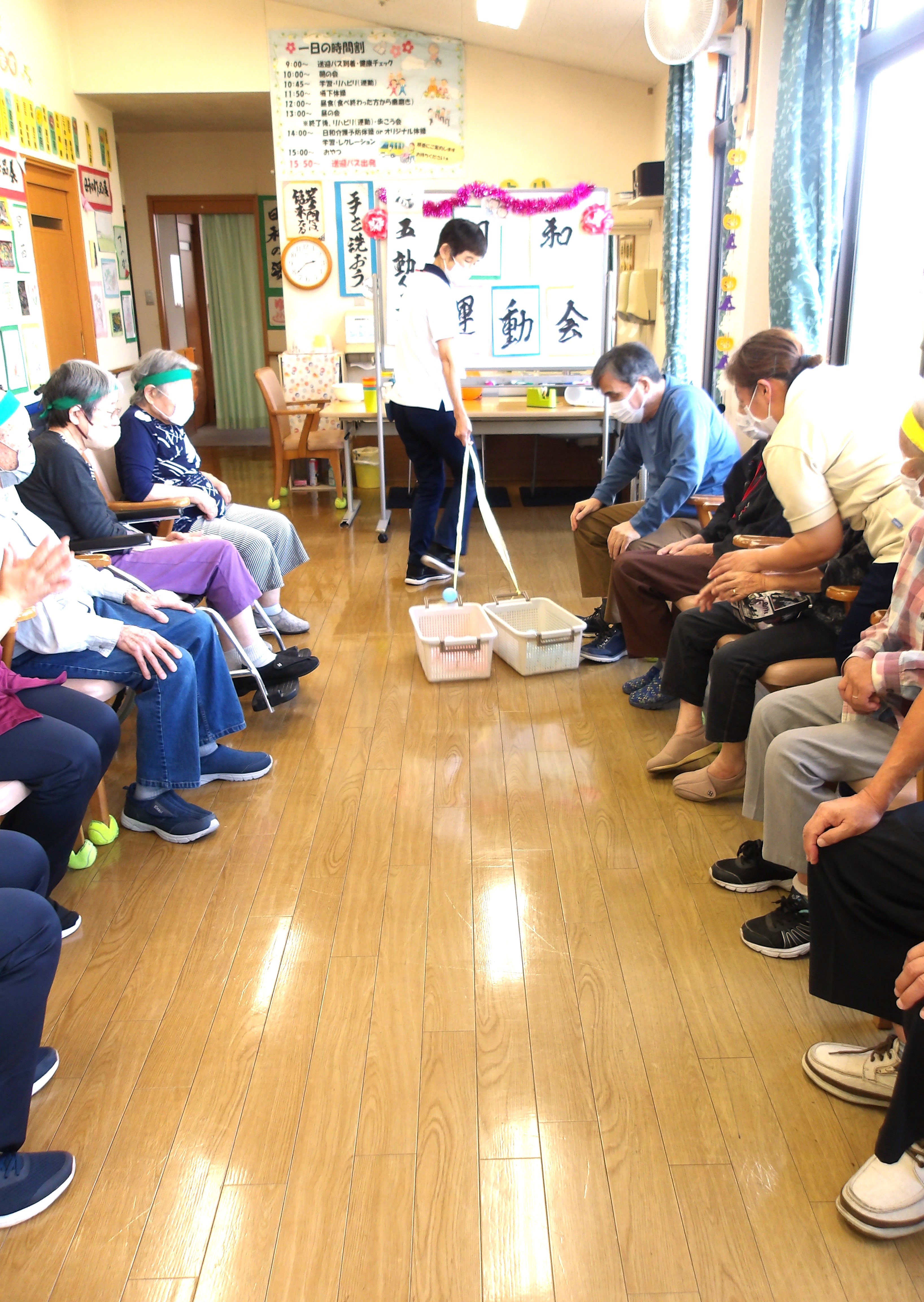黄色ハチマキの日和は”菜の花”、一方ユニット入所の方は緑色のハチマキ”クローバー🍀”とチーム名も決まり、いよいよ決戦の火ぶたが切って落とされます!