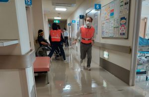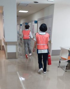 避難訓練では、有事の際に備え患者さんの安全な避難誘導や院内アナウンス方法の確認を行いました。