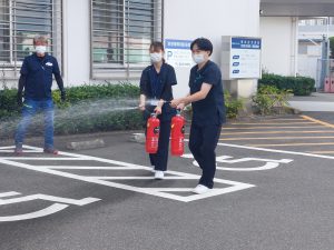 消火器訓練では消化器の安全な使用方法や、逆に危険な使用方法を教わりました。