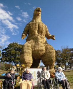 巨大なゴジラのわらかがしに一同、『大きかね~』と大興奮!