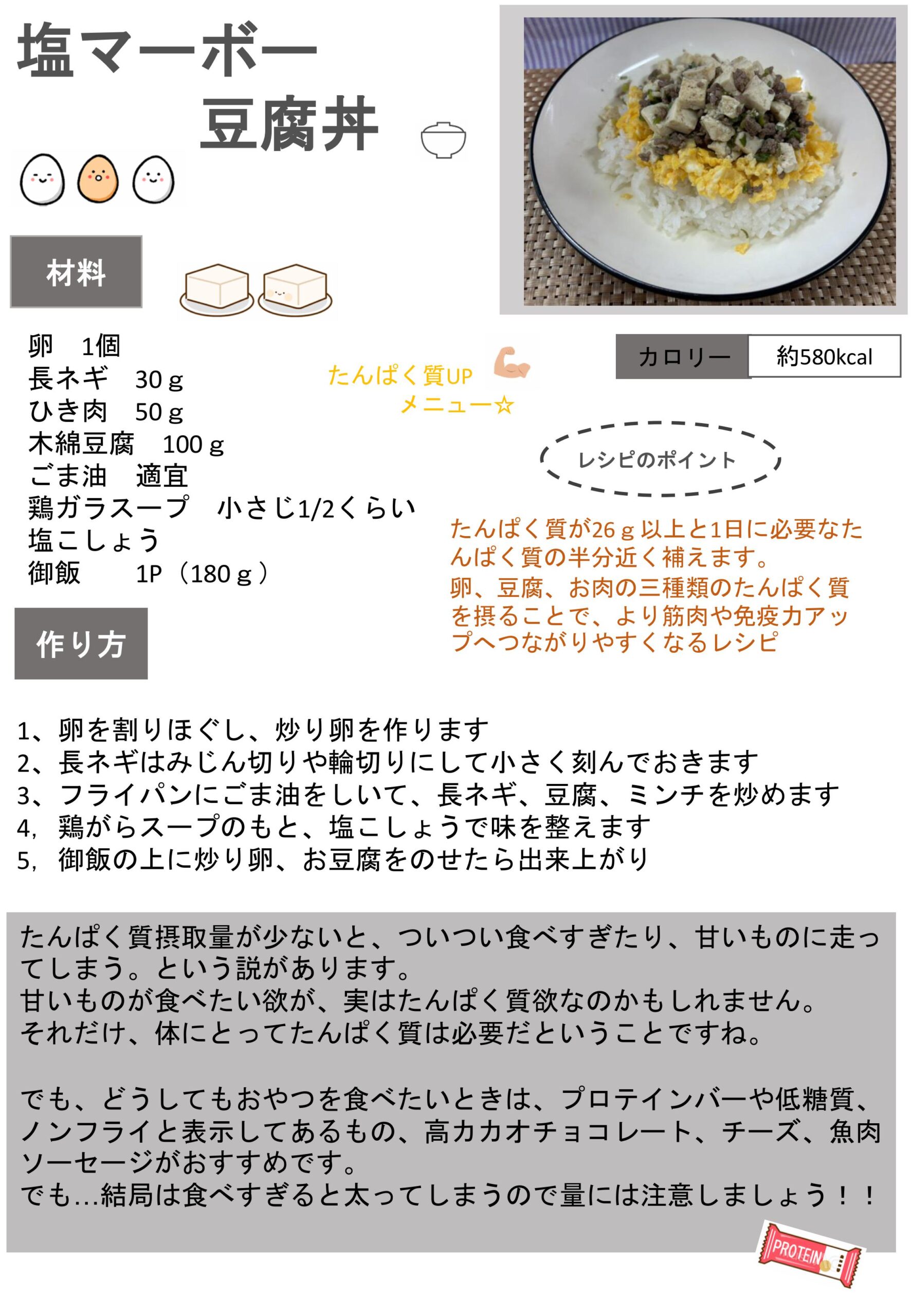 先日、当院で開催された料理教室で「塩マーボー豆腐丼」をみんなで作りました。