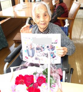 100歳を迎えられたご利用者様がお二人いらっしゃり、先日お誕生会を盛大に行いました✨✨