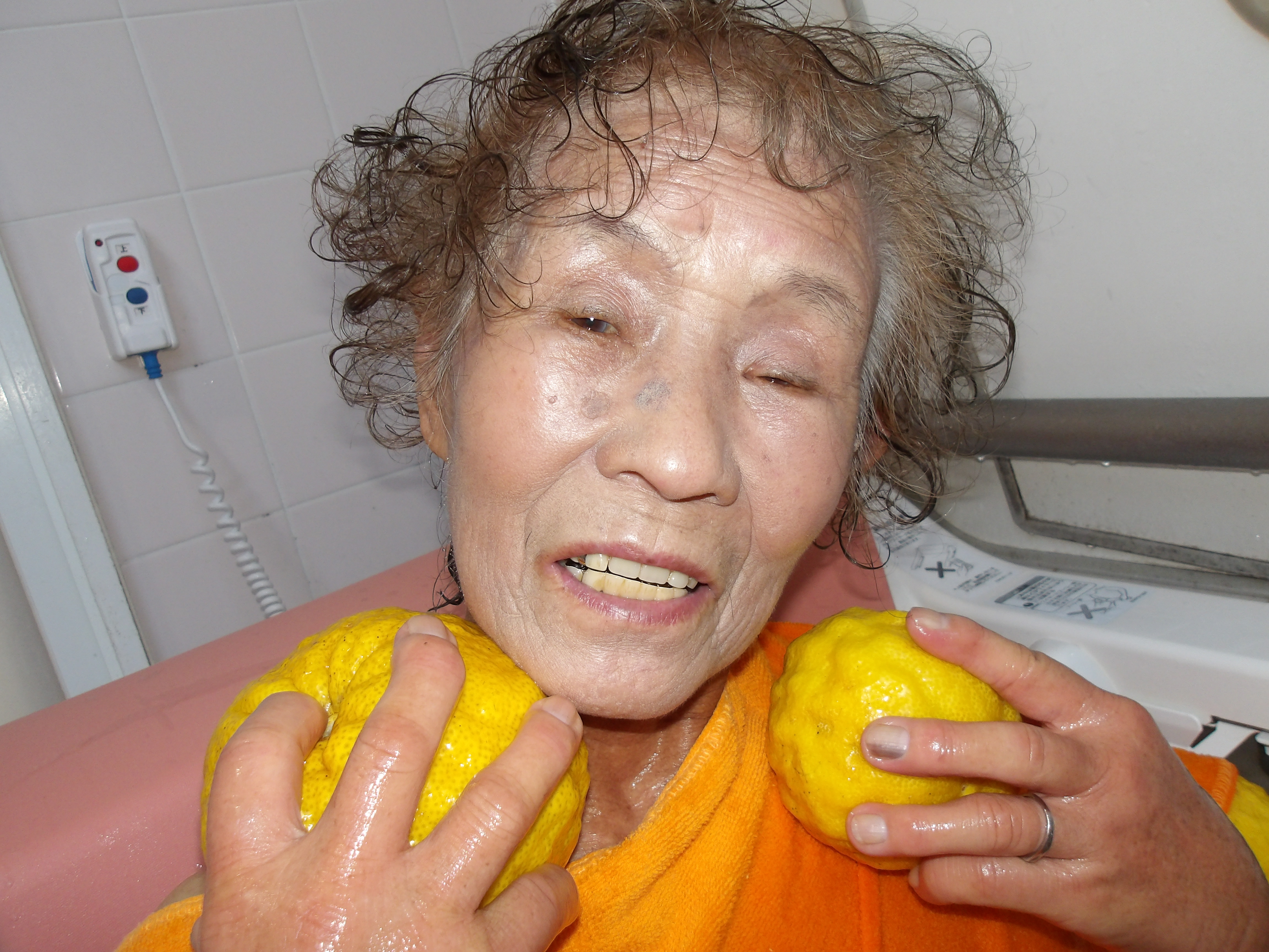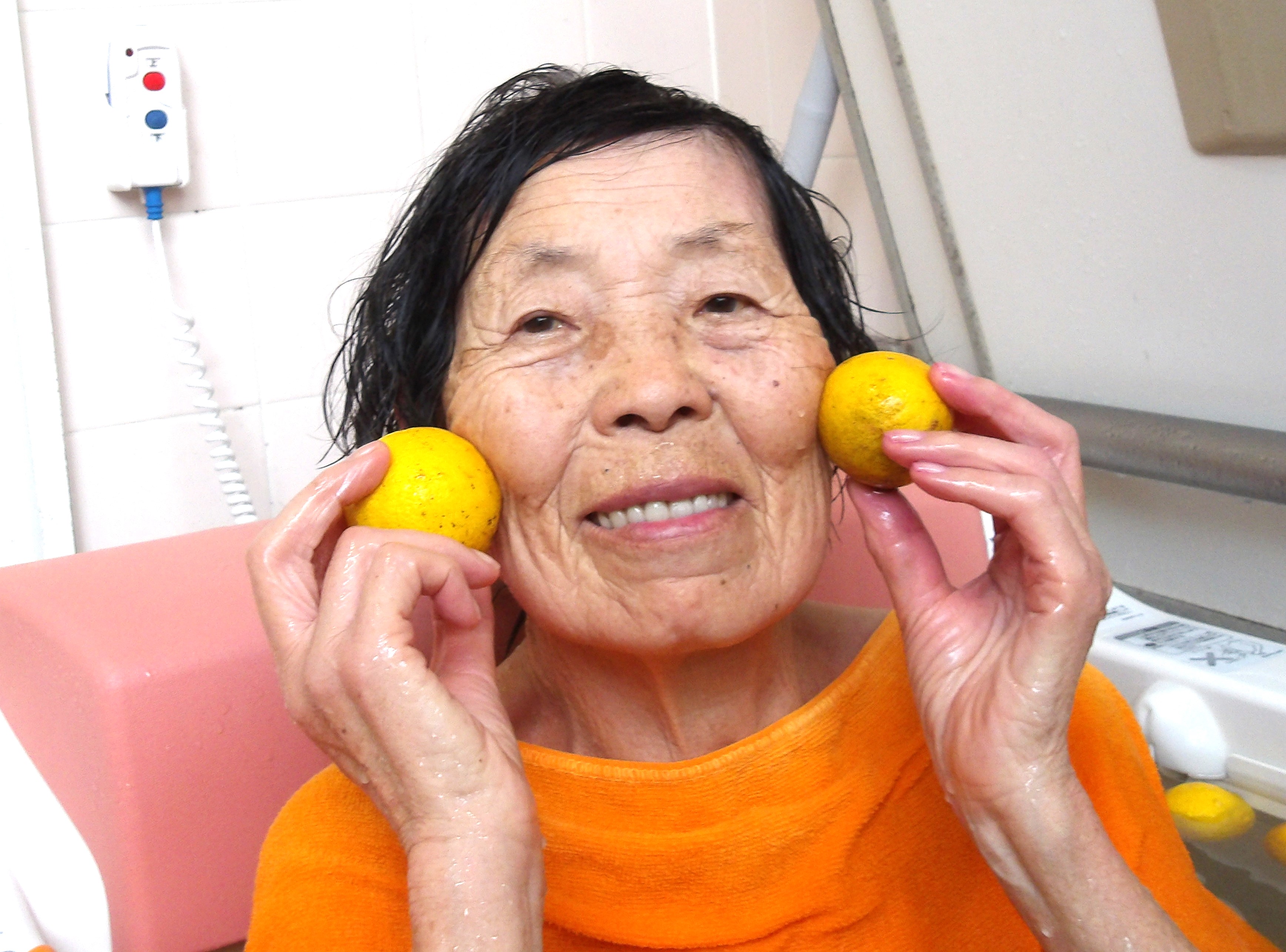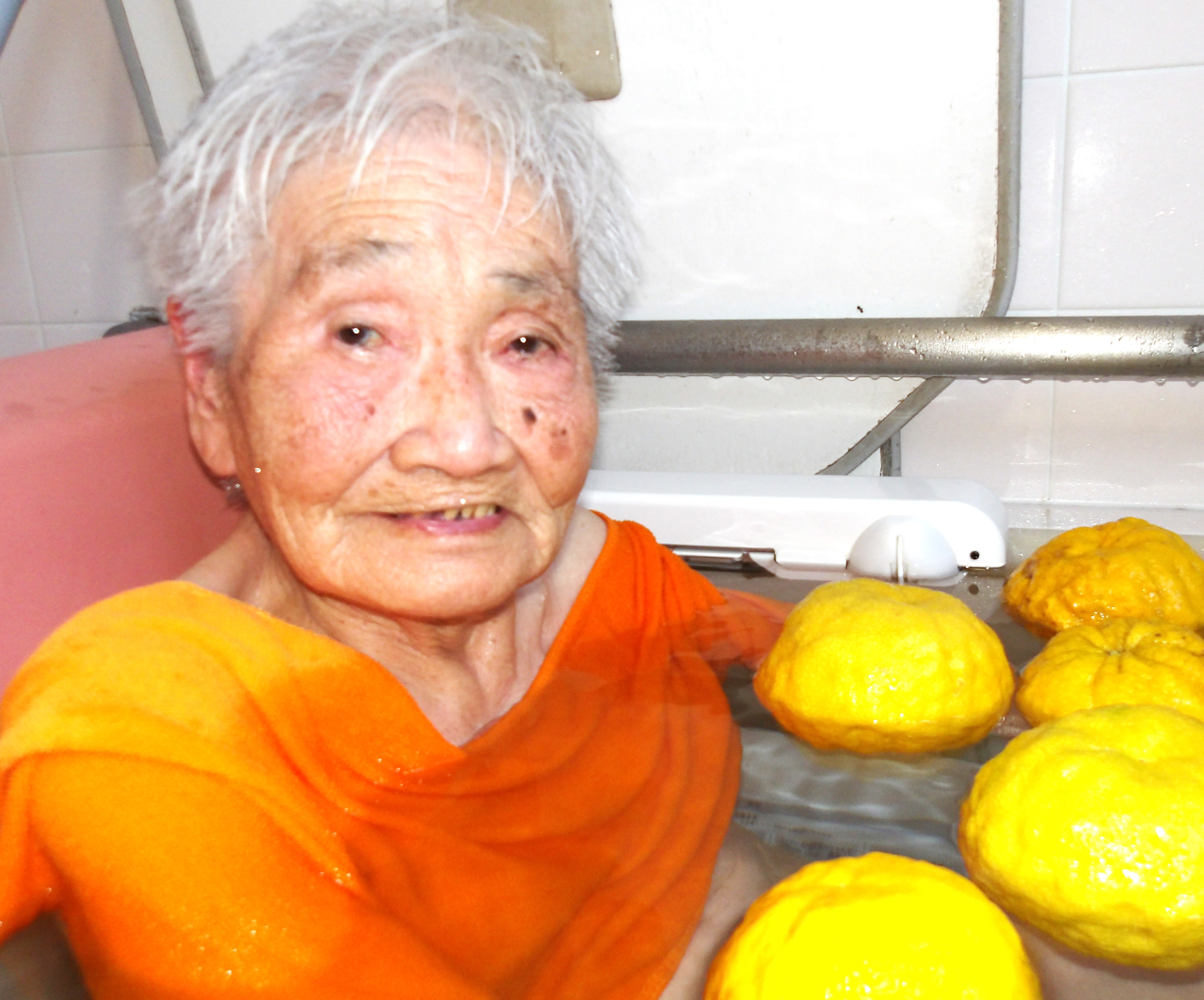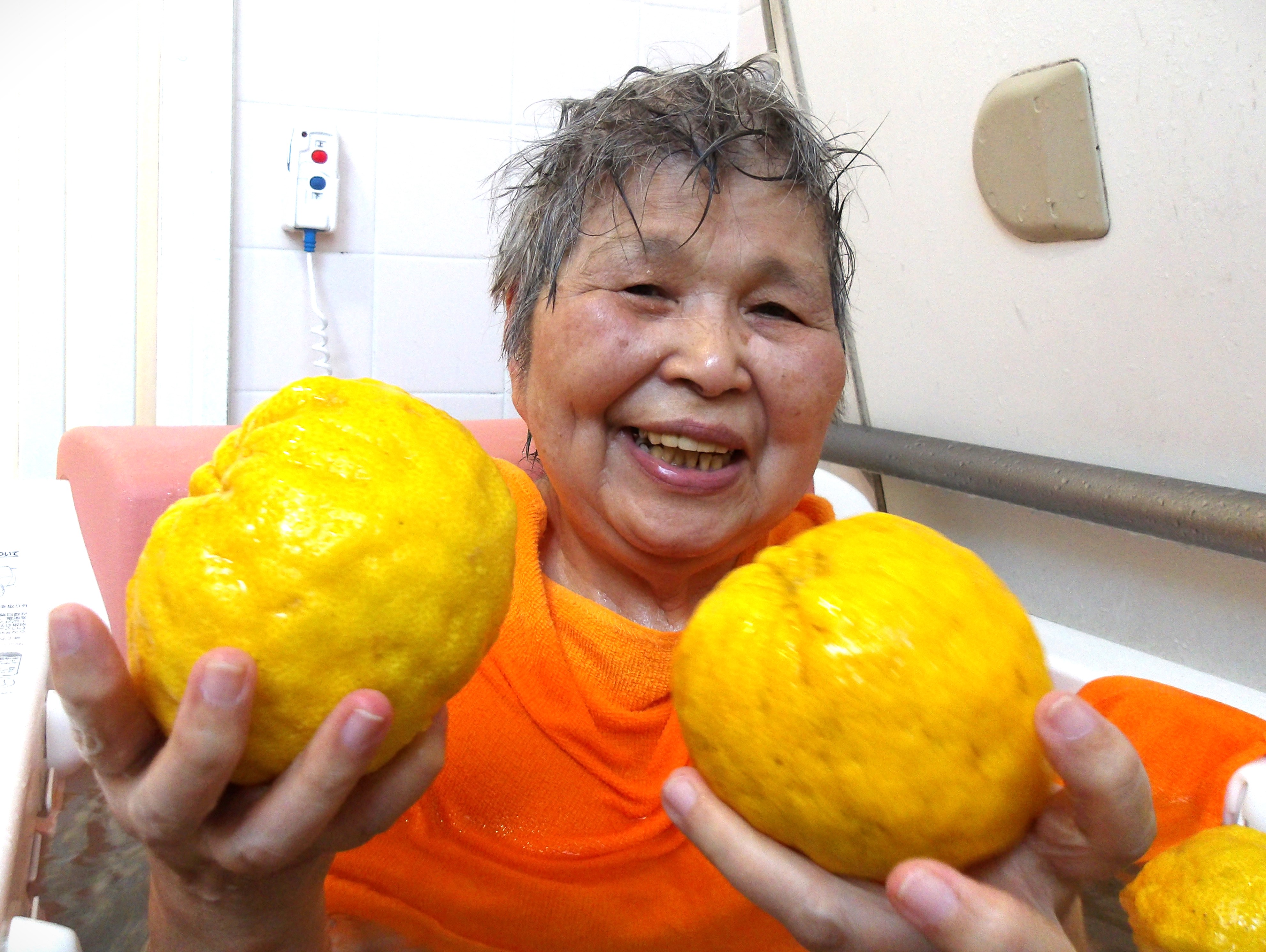 「わぁ!今日はゆず湯ね?」「いい香り♥」「嬉しい!(^^)!」