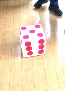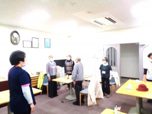 脳トレとして昔懐かしい双六ゲーム。双六は画面に投影しながら行いました!サイコロを振るだけでも笑いが起き、楽しいひと時でした。