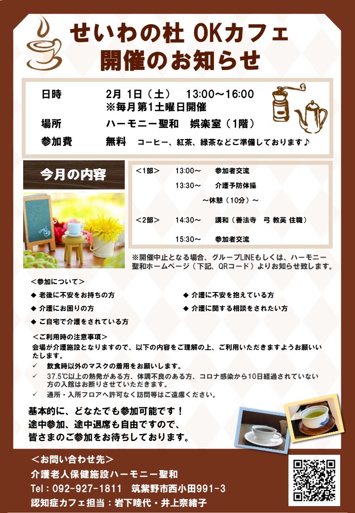 せいわの杜 OKカフェ(認知症カフェ)の取り組み|医療法人せいわ会/介護老人保健施設 ハーモニー聖和 (seiwa-kai.com)