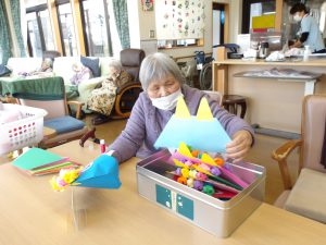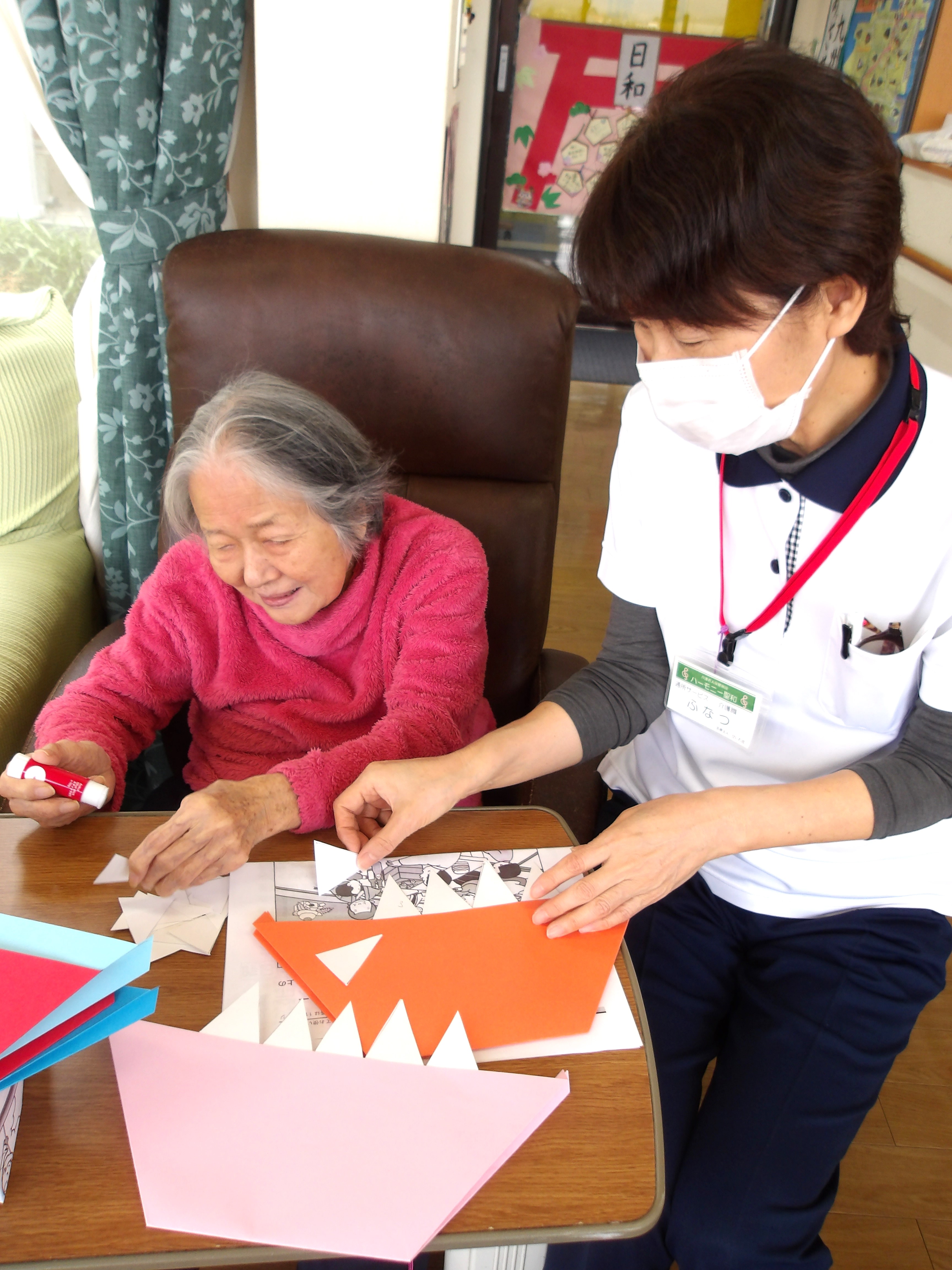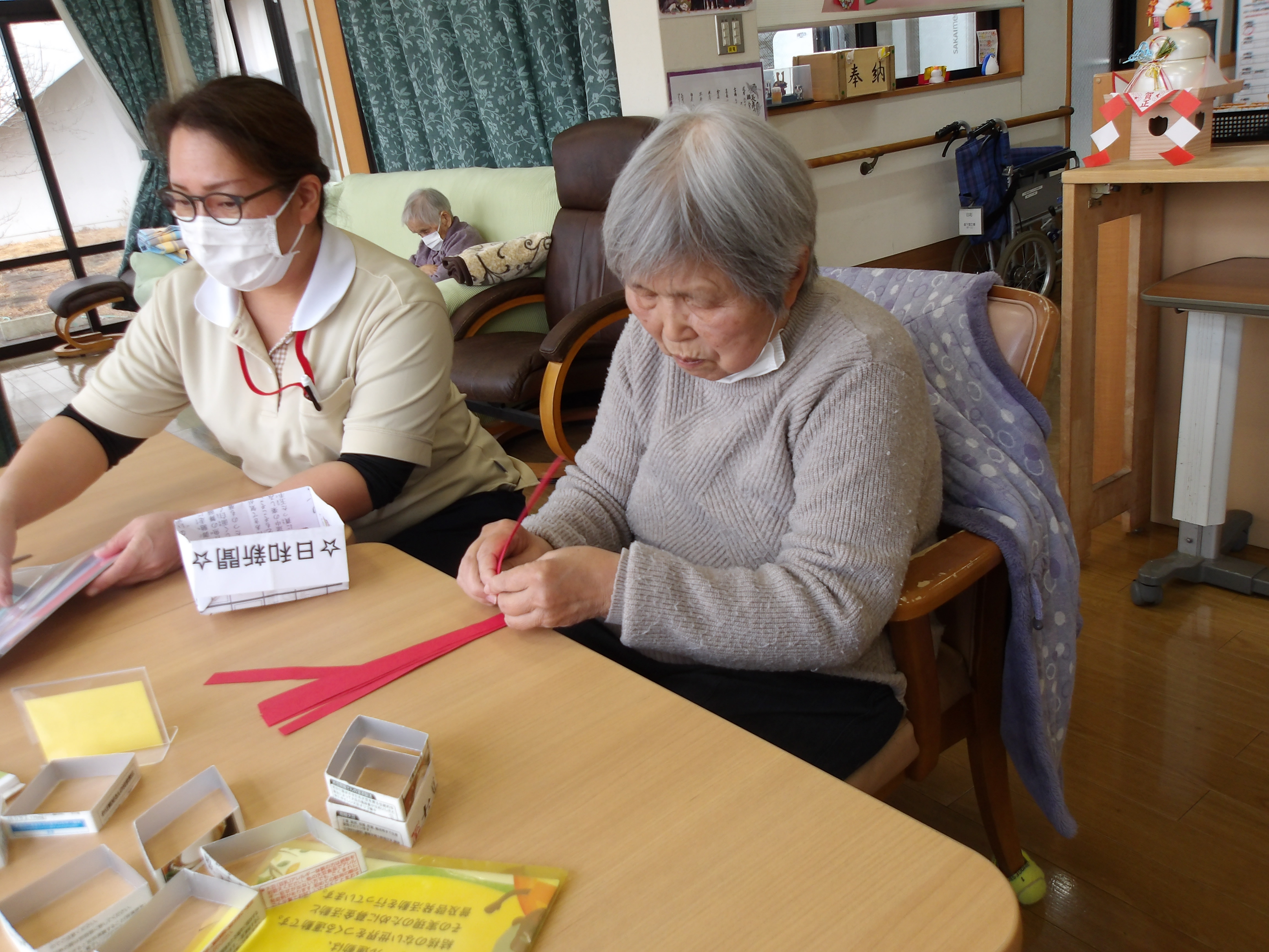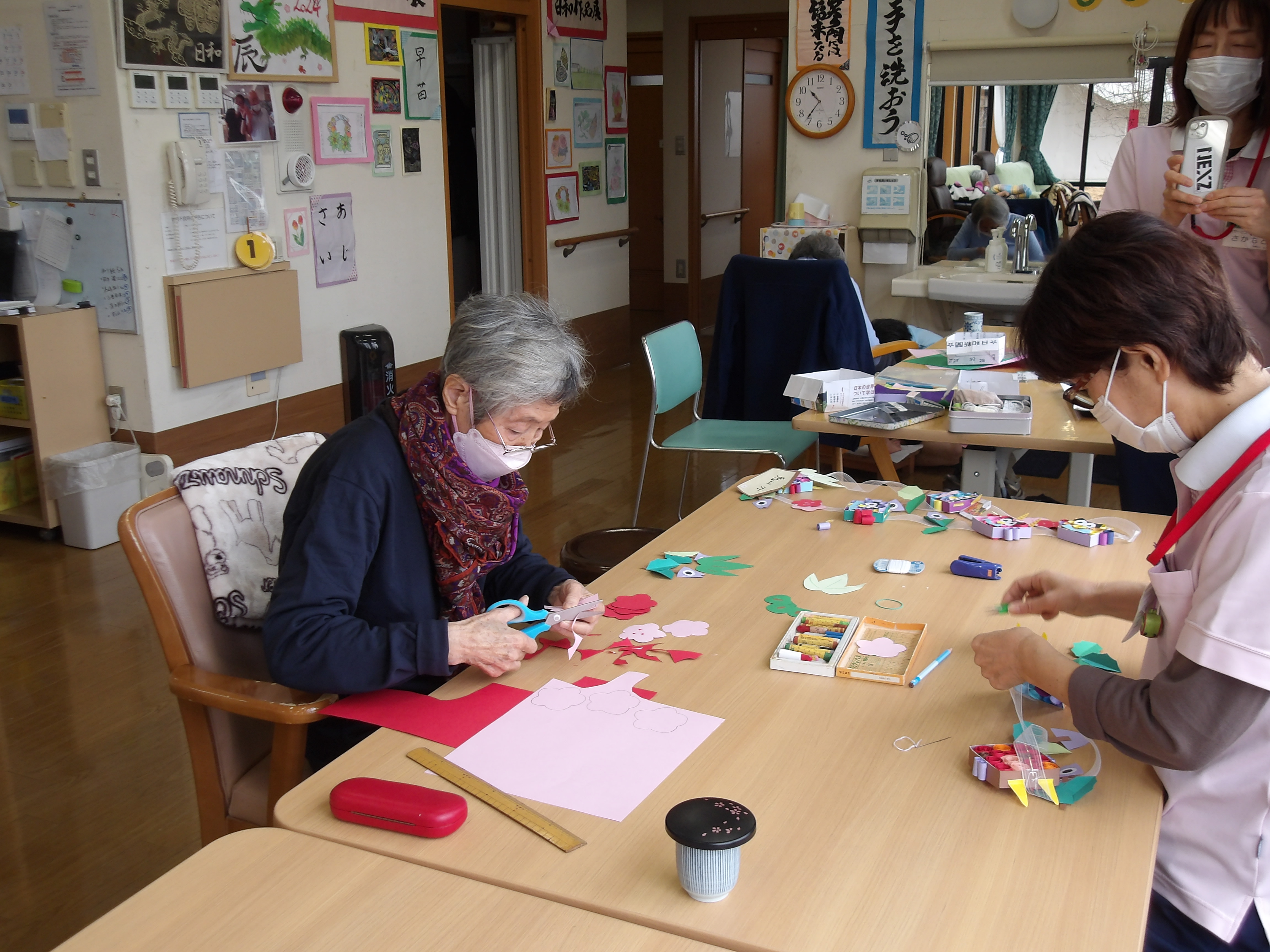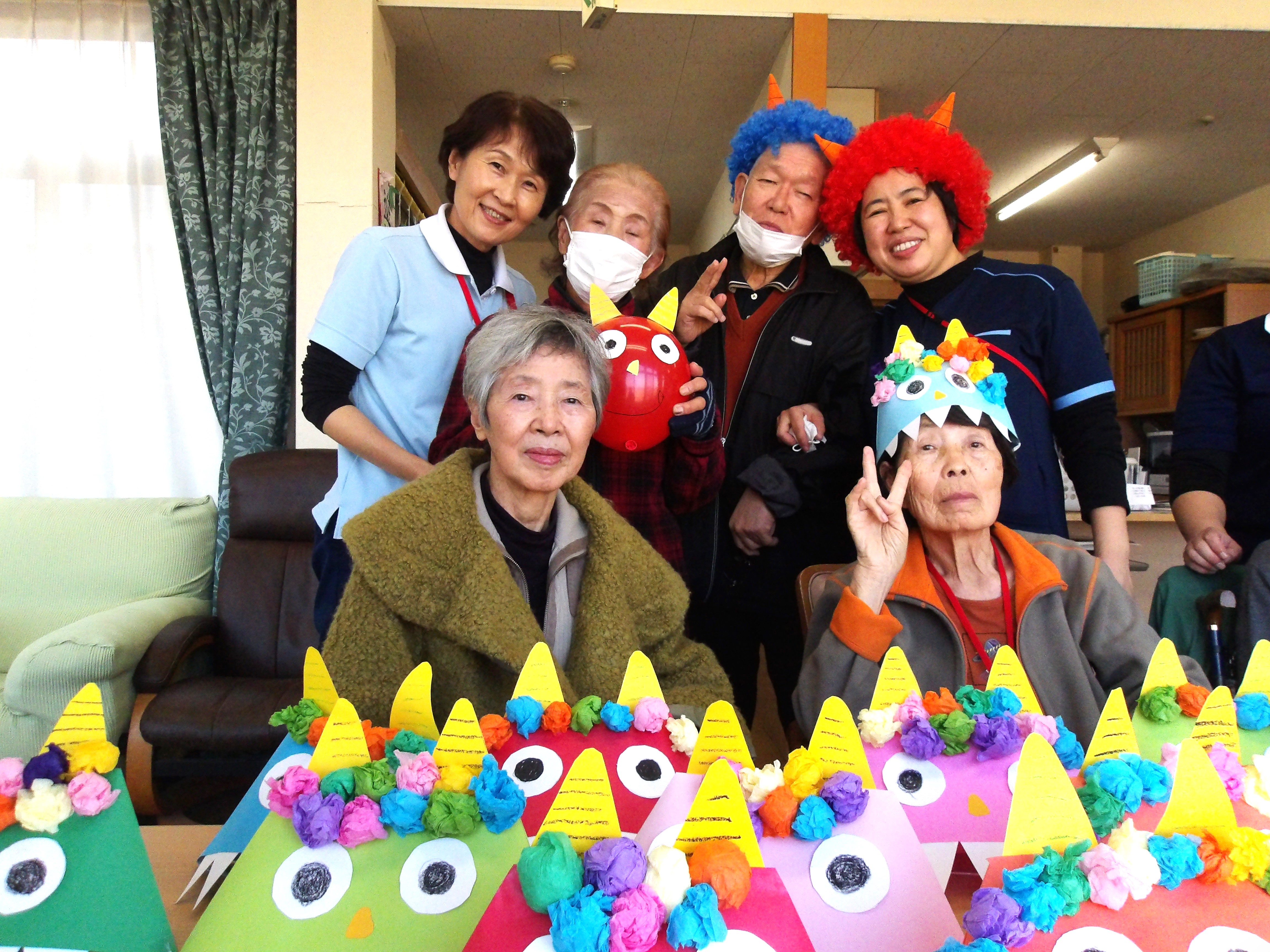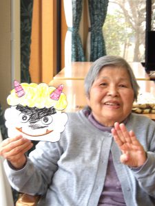 2月といえば.. ”節分”ですね! 季節を感じて頂くため、皆さんと一緒に節分の”つるし飾り”や”鬼のお面作り”を行いました💗