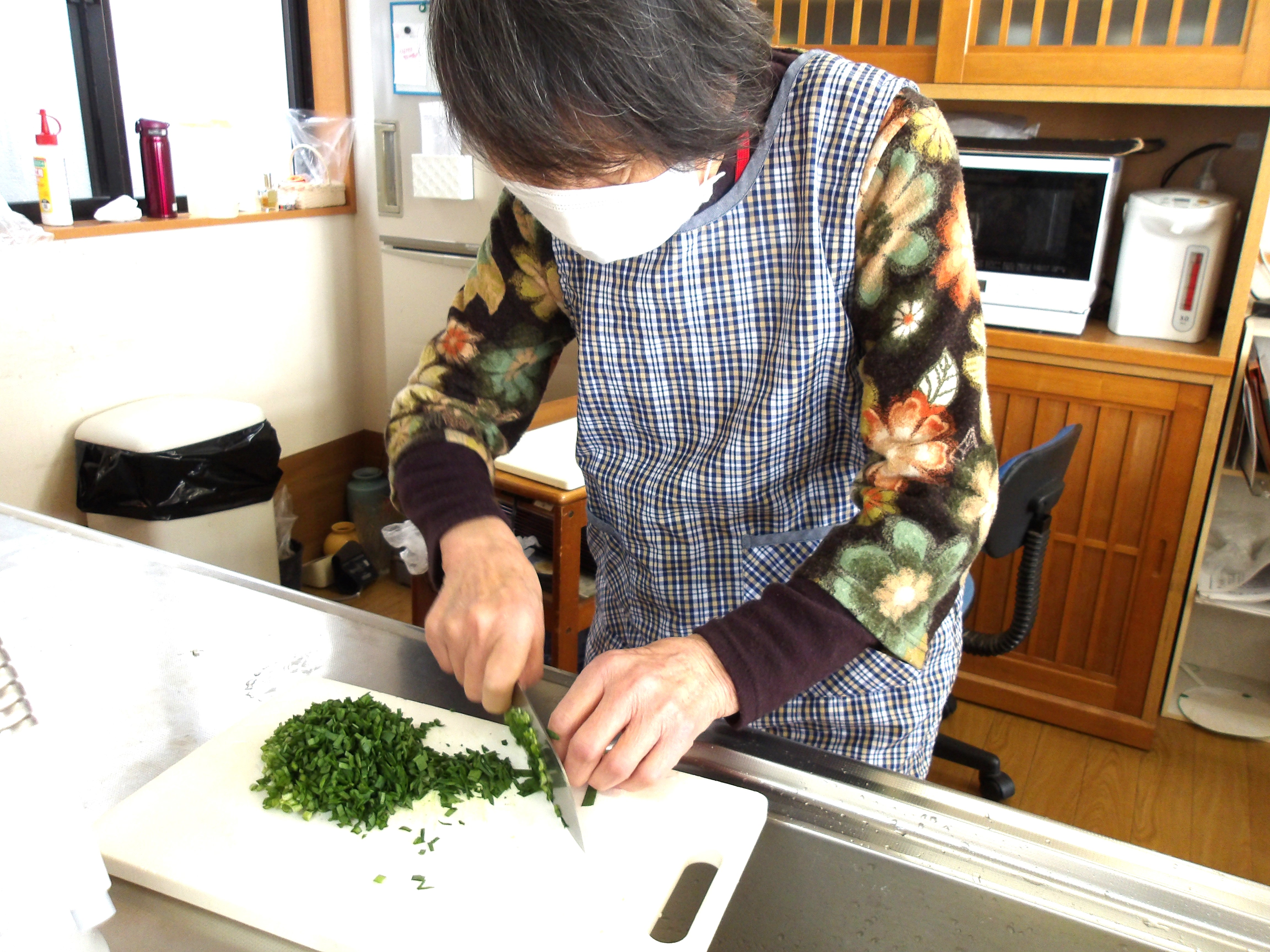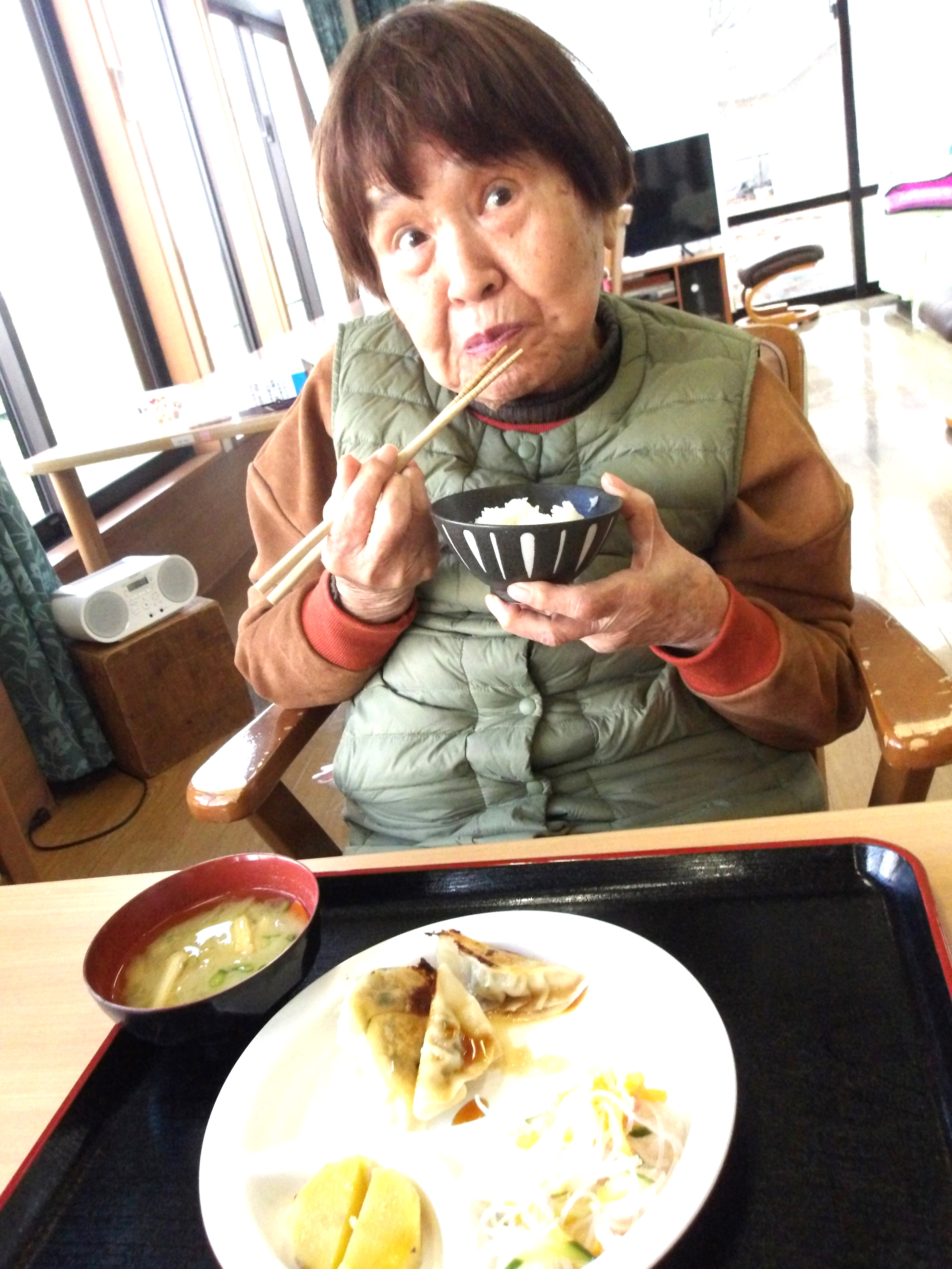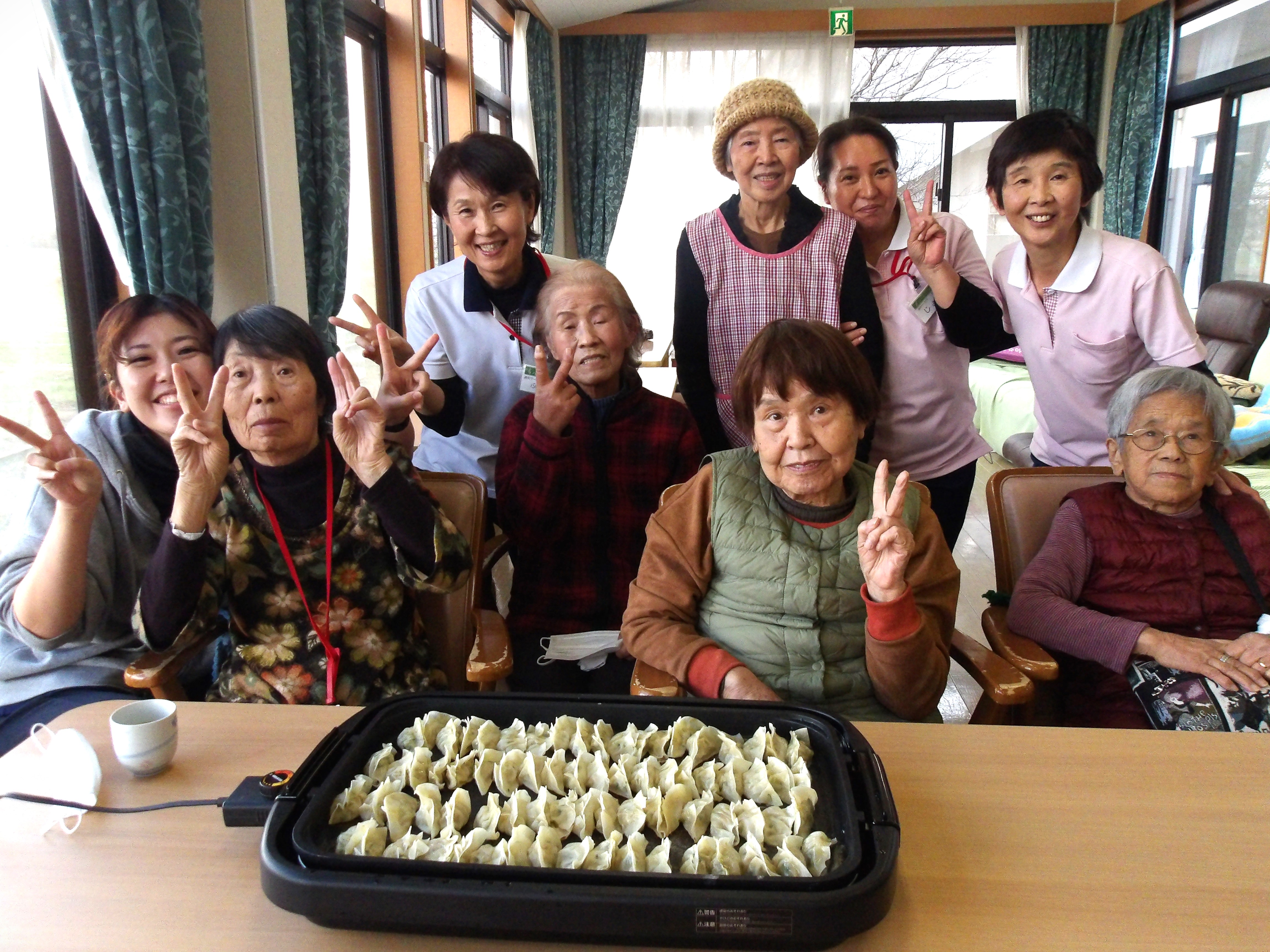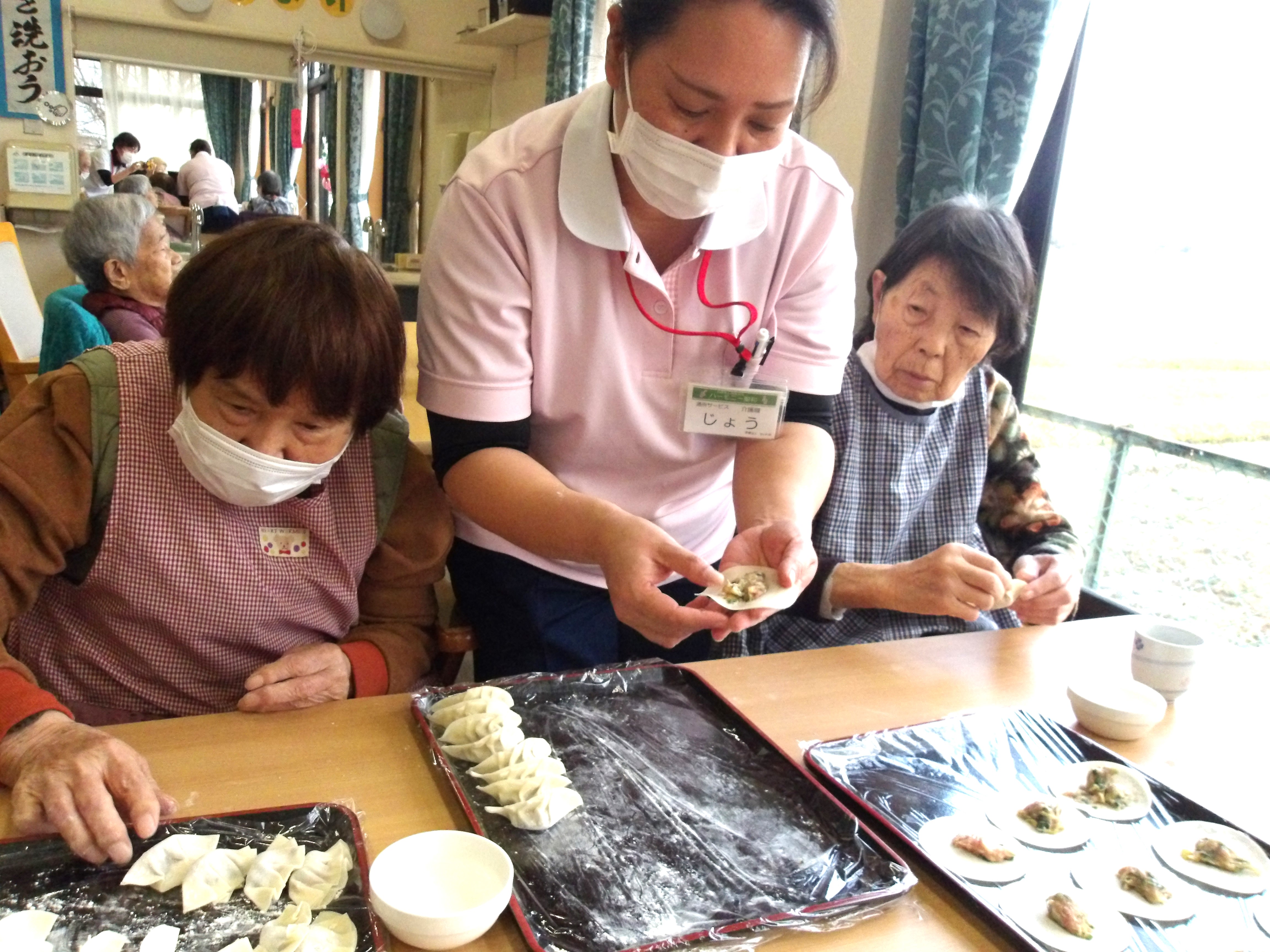 「これから餃子を作ってお昼ご飯に食べましょう!皆さん、お手伝いお願いしますね♪」とお伝えすると、皆さんの目がキラキラ✨と輝き、一気にやる気スイッチオン♫♪