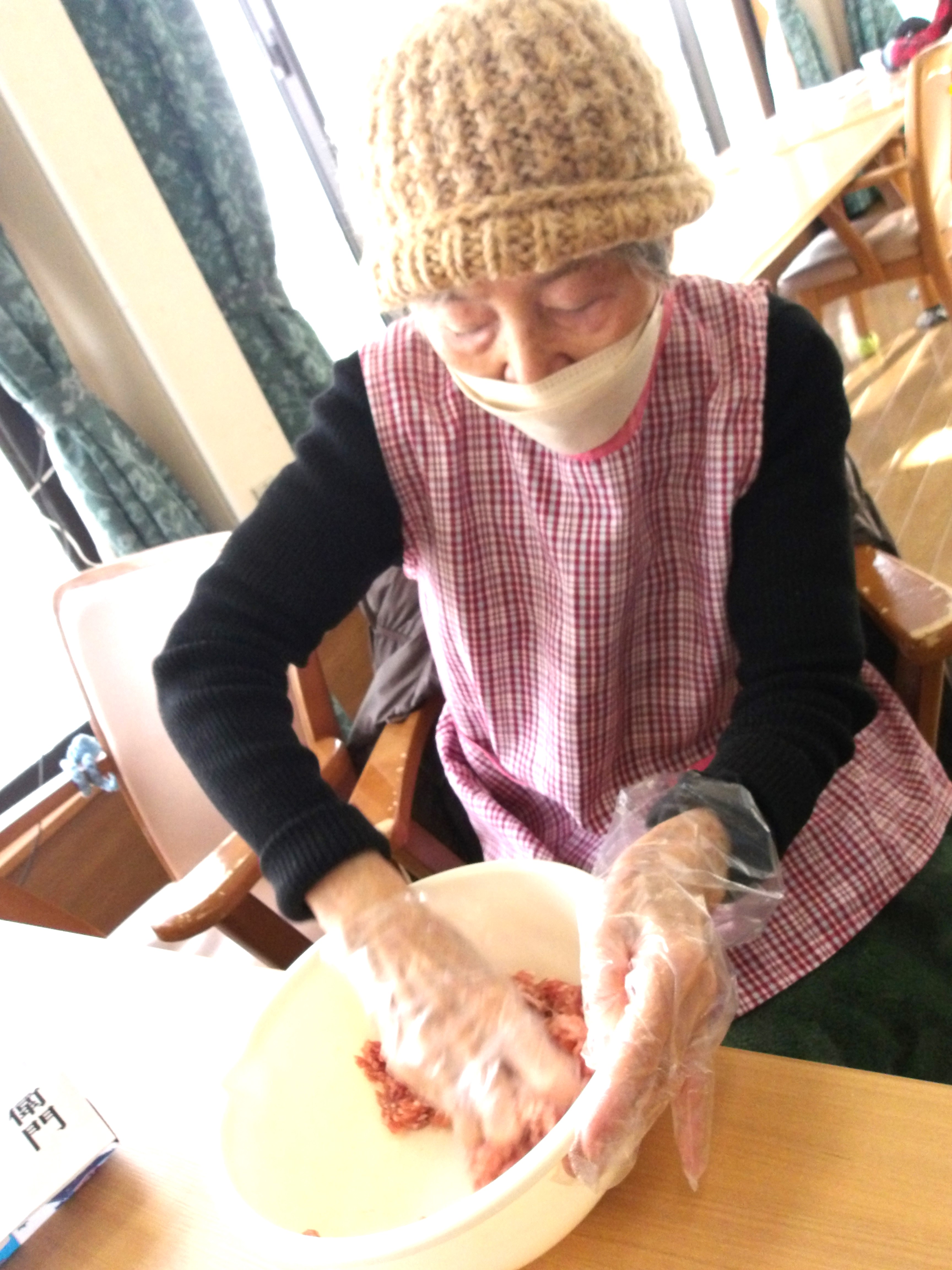 役割分担して作業を進めていきます。餃子に入れる野菜を切ったら、次はひき肉と混ぜ合わせていきます。ここも丁寧に混ぜ合わせて下さいました。