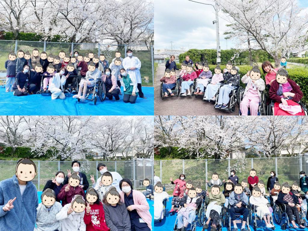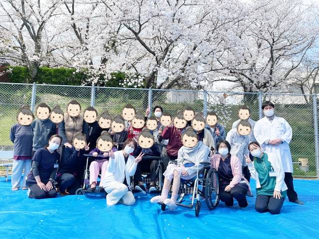 ・活動的な患者さまの多い病棟では、桜の下でプチレクリエーションや写真撮影も行い、笑顔あふれる時間となりました。