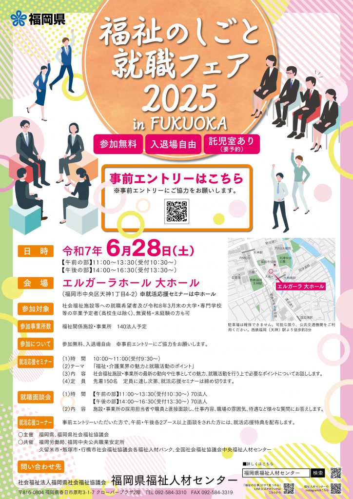 2025年6月28日(土)に福岡市天神の「エルガーラホール」にて開催される『福祉のしごと就職フェア2025 in FUKUOKA』 に参加いたします。