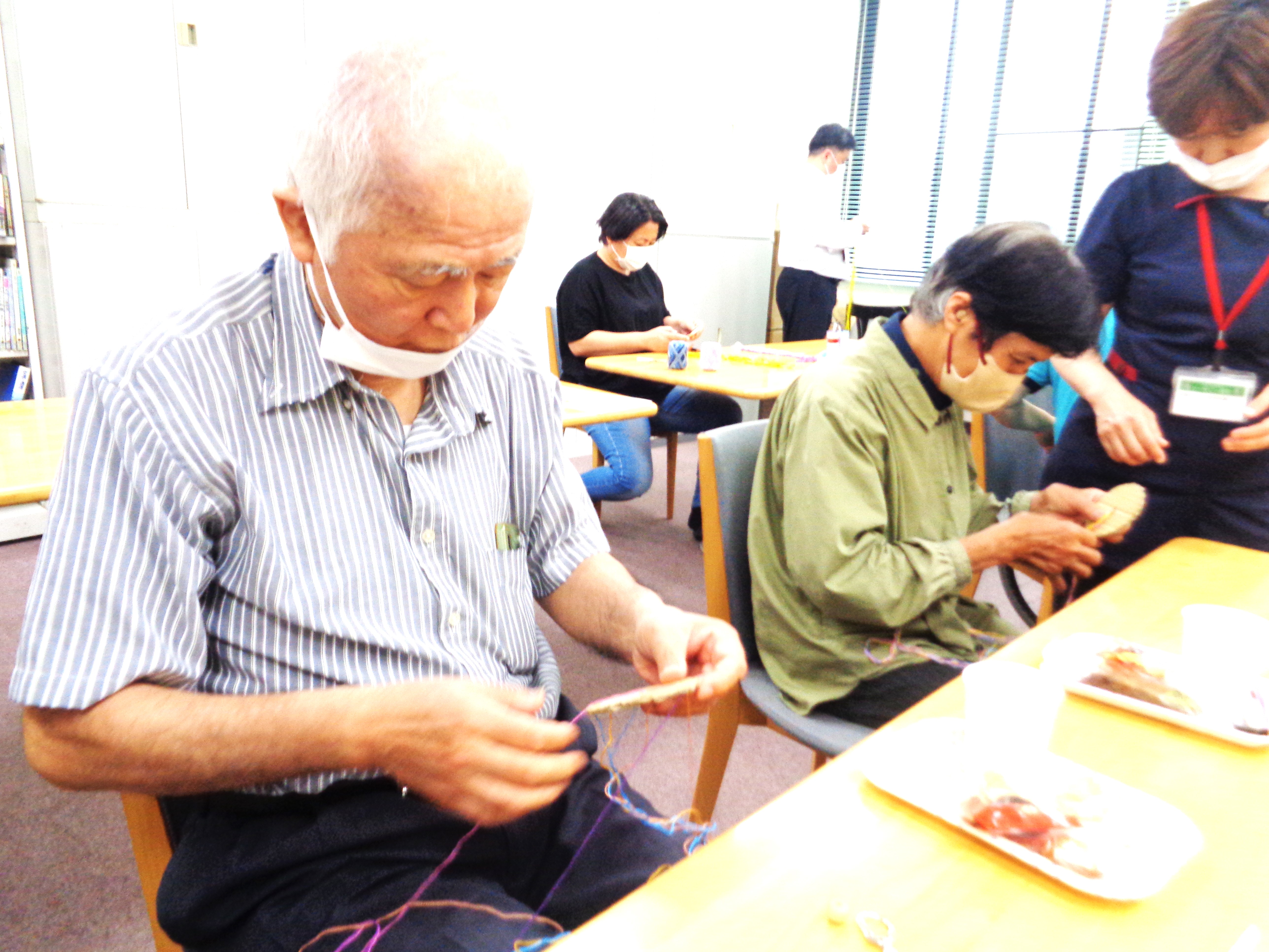 糸を絡ませて編めなくなった職員⁇↓