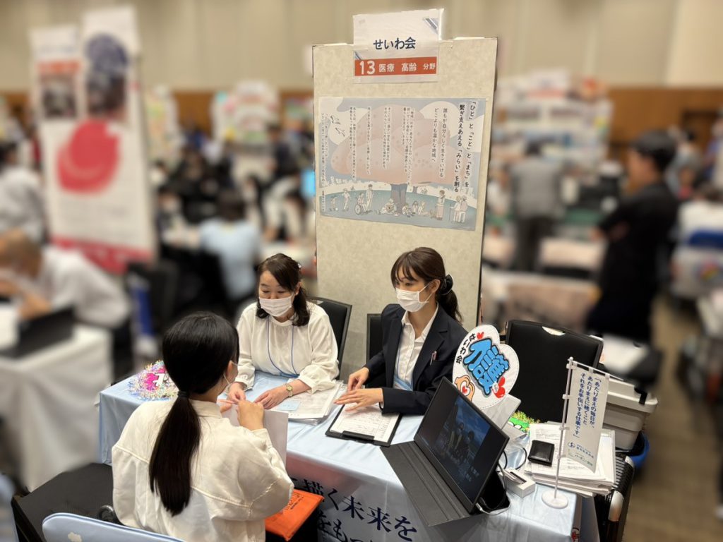 ブースでは法人の雰囲気や職場のこと、働き方についてなどせいわ会の魅力をたくさんお話させていただきました。