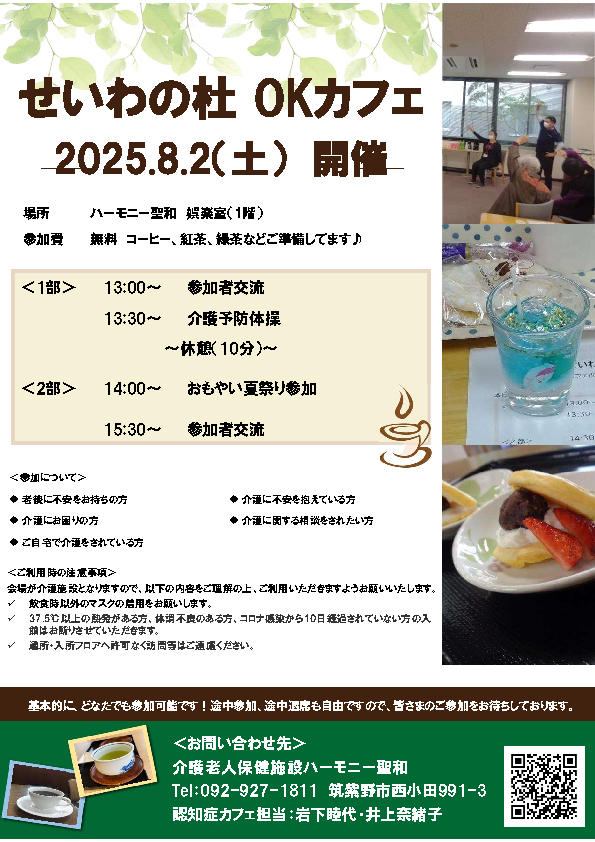 せいわの杜 OKカフェ(認知症カフェ)の取り組み|医療法人せいわ会/介護老人保健施設 ハーモニー聖和 (seiwa-kai.com)