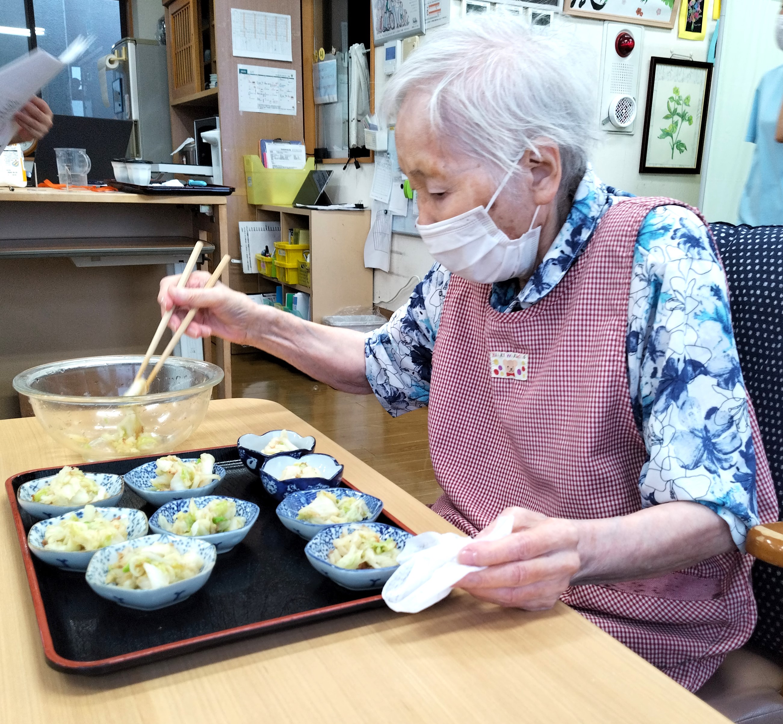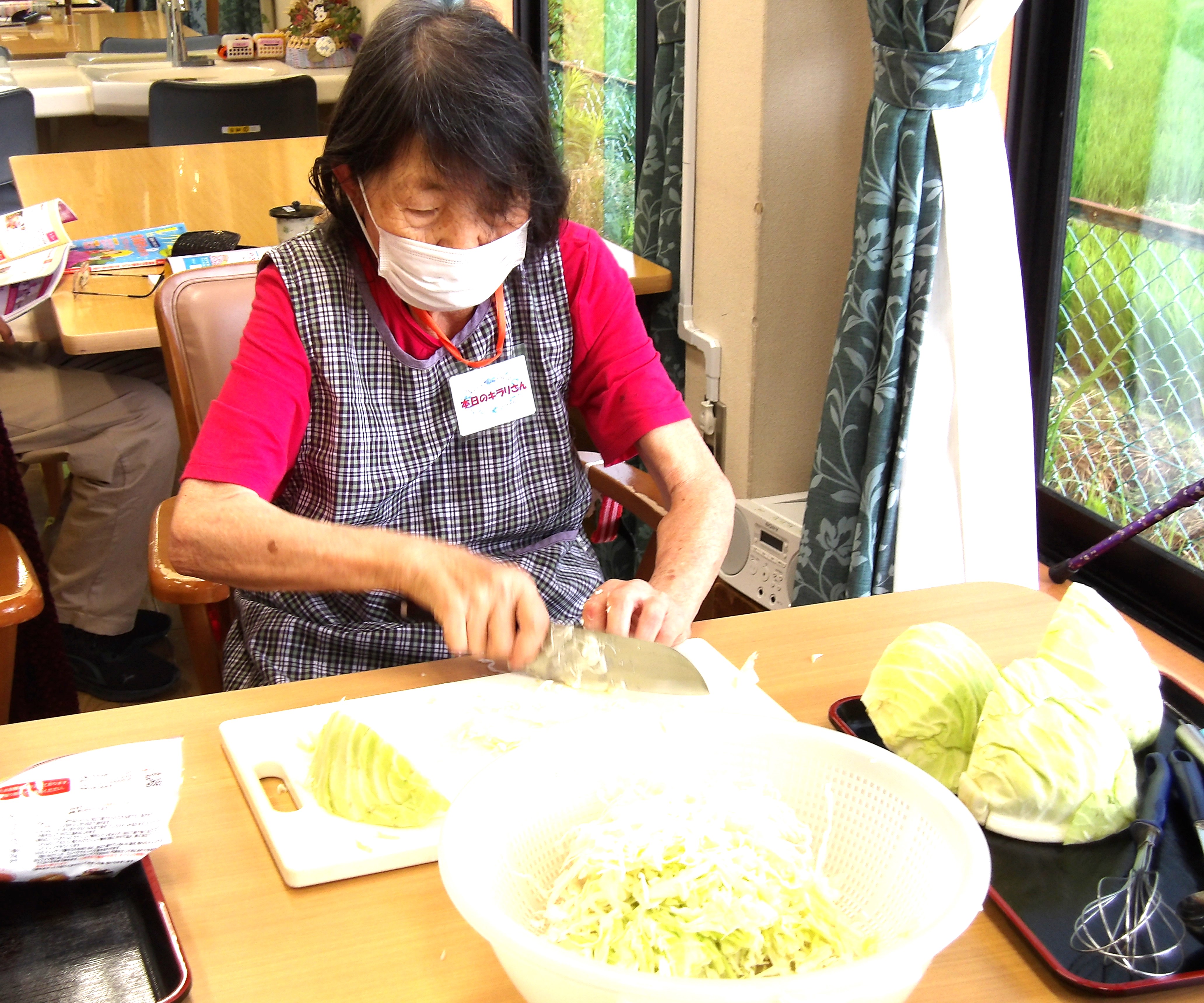 包丁を手にした利用者さんの手つきは、まさにベテランの風格✨