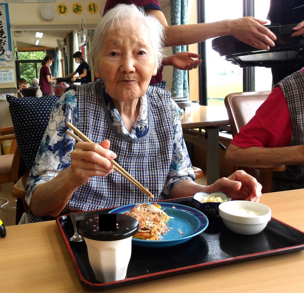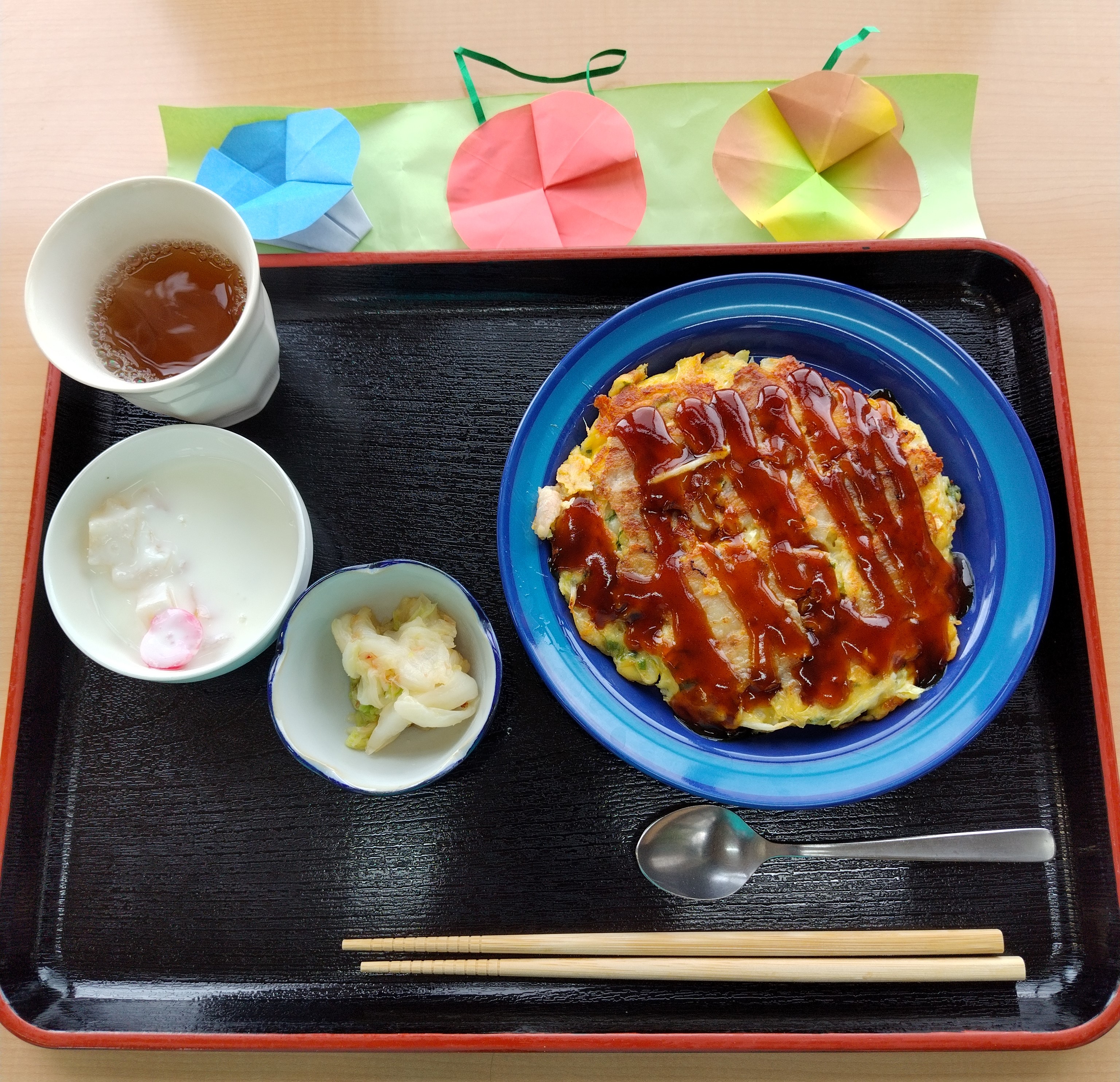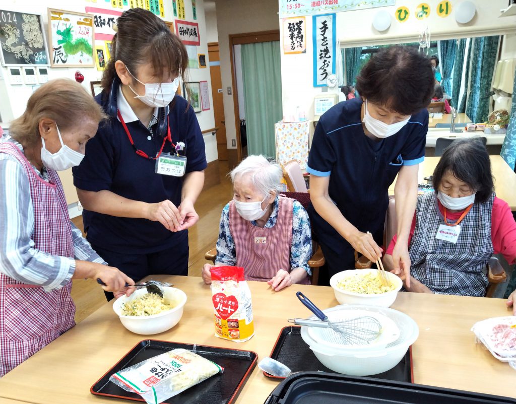 こんにちは!今日のお昼ごはんは、日和の皆さんでお好み焼き作りに挑戦しました!