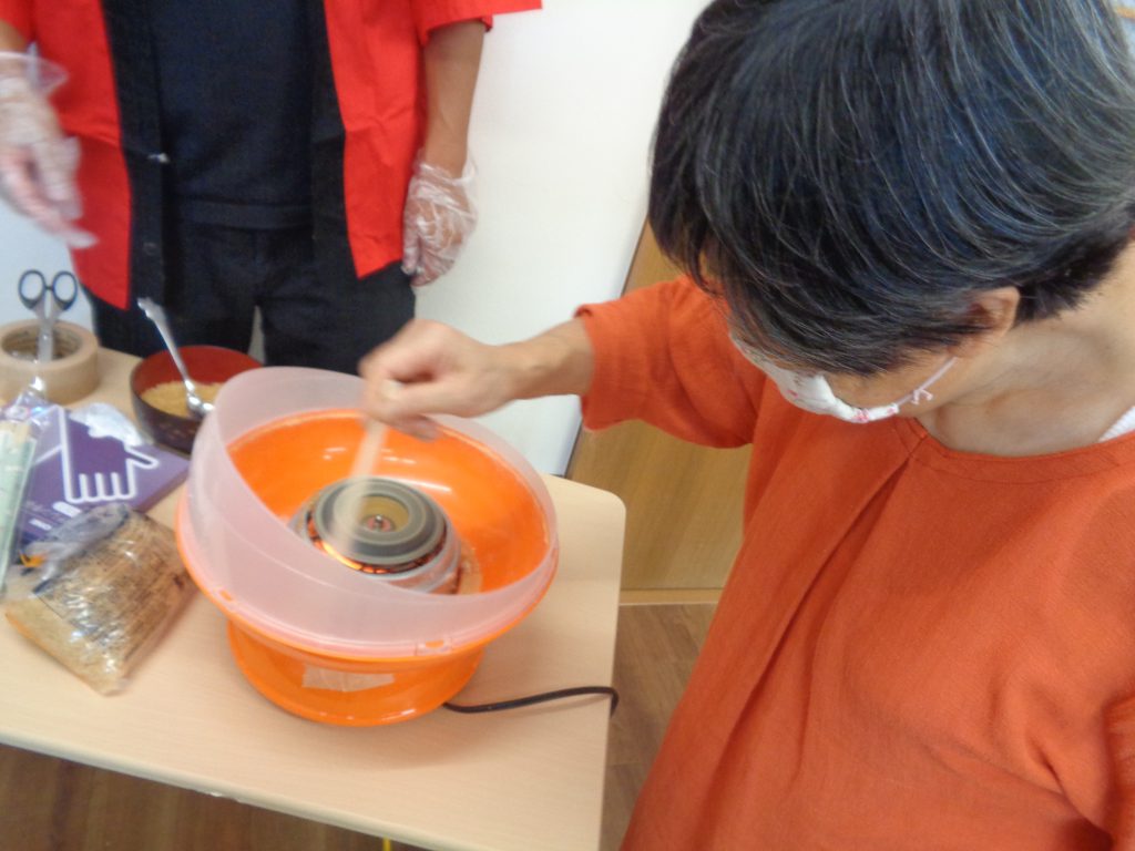 なかでも1番人気は、綿あめづくり!なかなか丸くならないけど、懐かしい味に満足💓