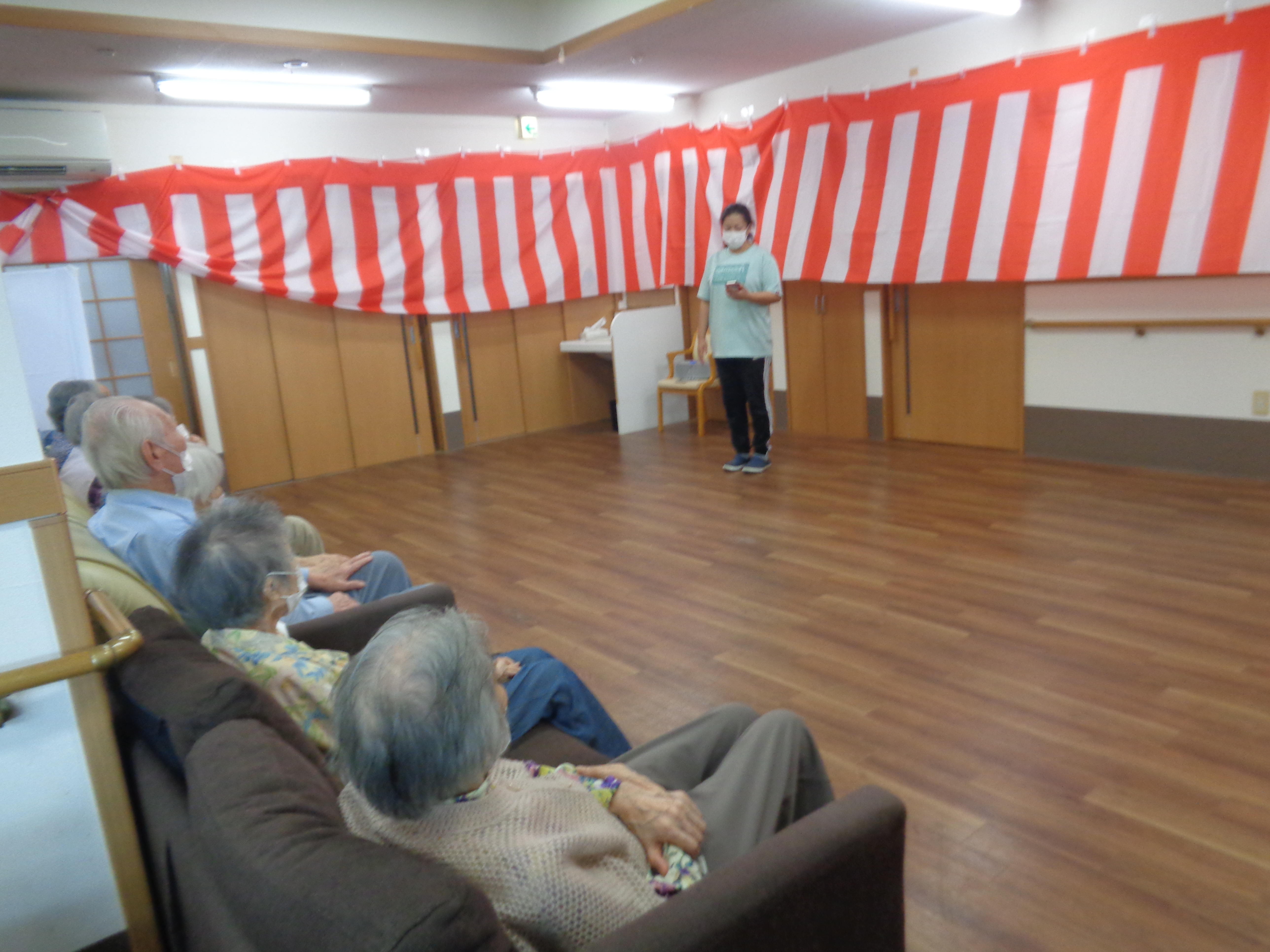 最後に記念品として職員一同のお祝いの寄せ書き色紙をお一人お一人にプレゼント。寄せ書きを読み聞かせ、皆様大変喜ばれていました。色紙は居室に飾っていますので面会の際に是非ご覧下さい。