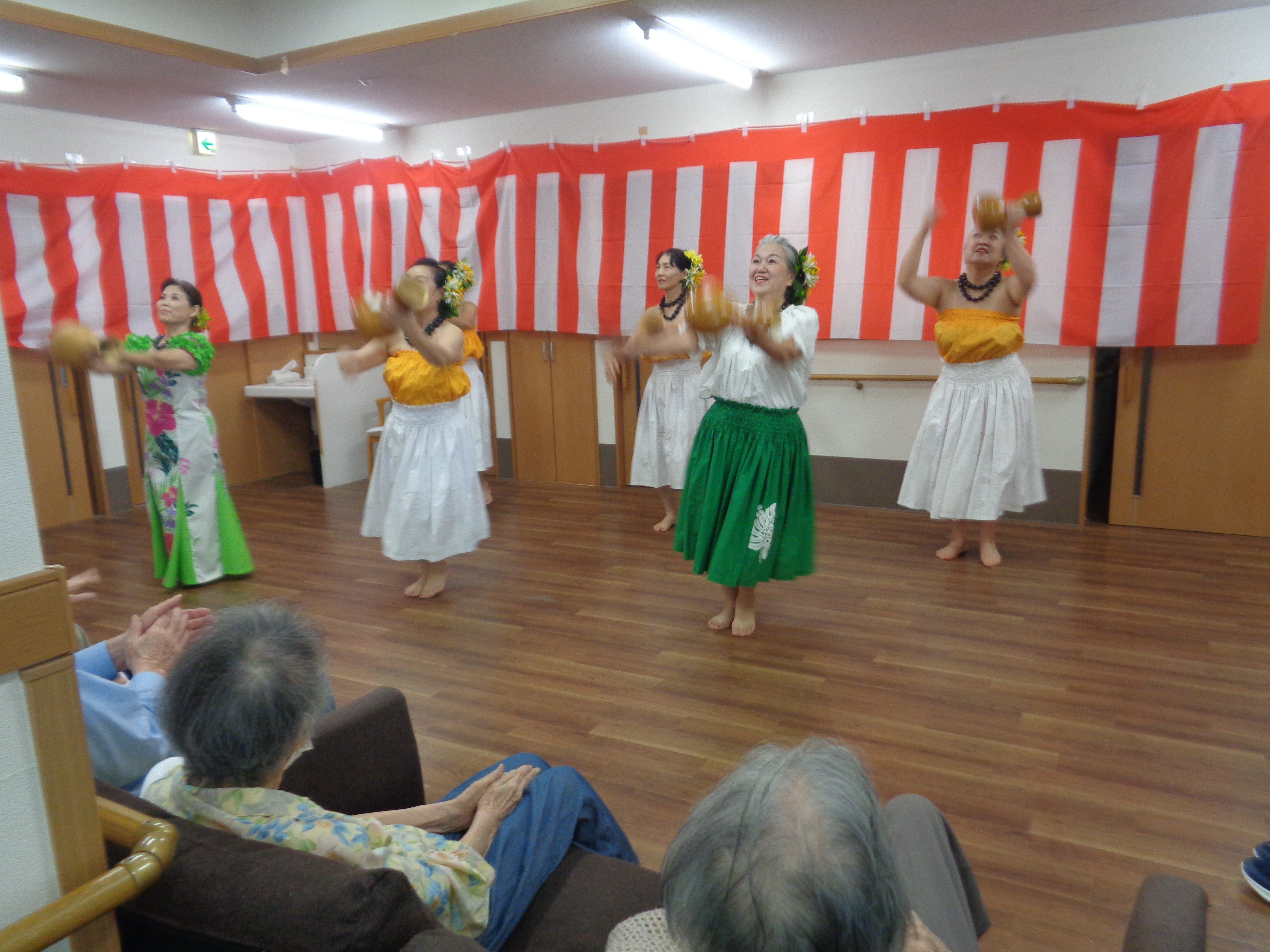今年は皆様に喜んで頂けるようボランティアの方々をお招きし、フラダンスを披露して頂きました。
