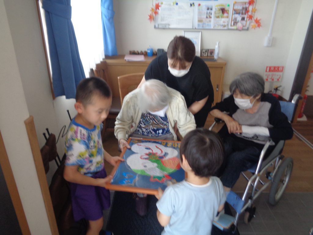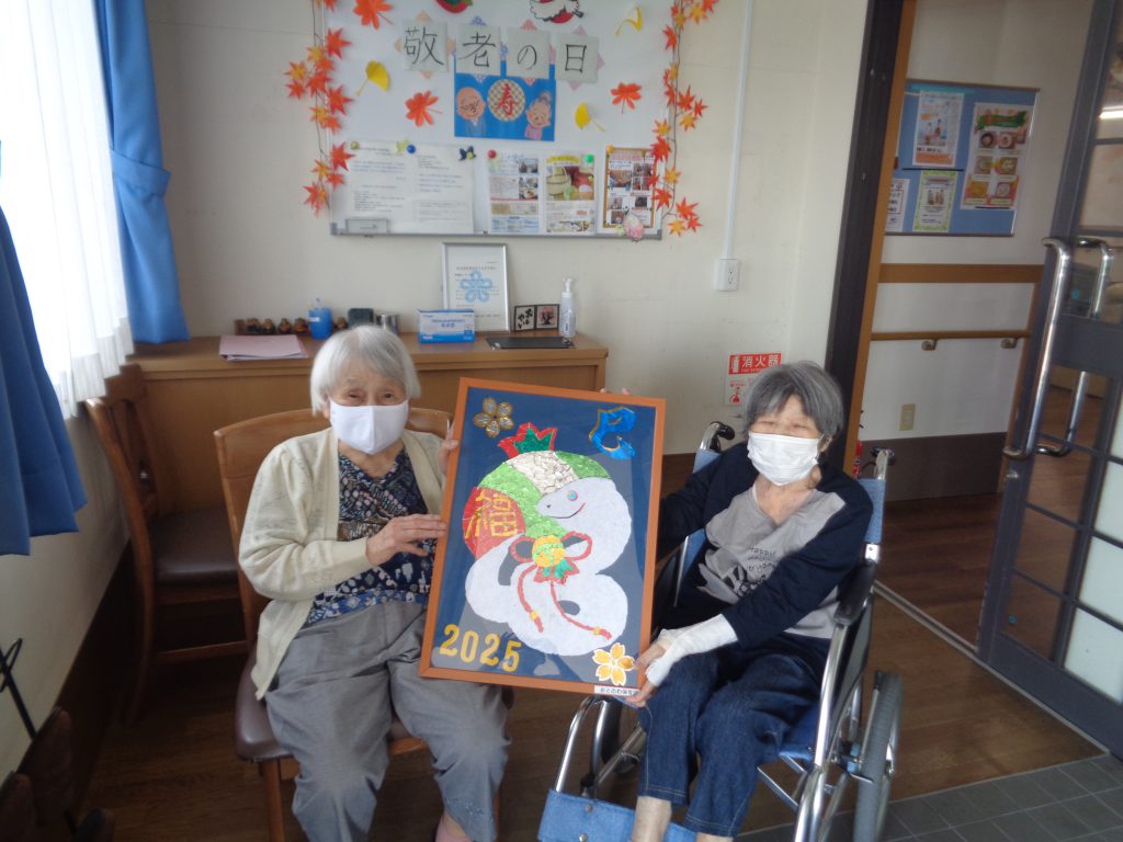 敬老の日 おもやい 2025/09/24 1:41 9月15日・敬老の日に可愛い子達の来客が来ました。グループホームおもやいに併設している「おとのわ保育園」の園児たちがご利用者の皆様にプレゼントを持って来てくれました。 玄関先でプレゼントを嬉しそうに受け取る皆様。今年の干支の蛇を貼り絵で作成してくれていました。 気持ちのこもったプレゼント、ありがとうございました。小さい子達から元気を頂いた皆様でした。 グループホームおもやい 次の記事へ 一覧に戻る 前の記事へ