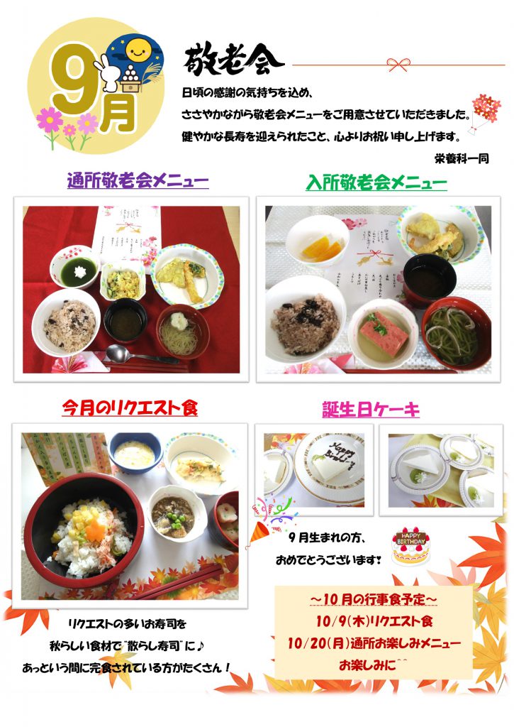 栄養科だより25.10月号 ハーモニー聖和ブログ 2025/10/07 12:08 皆さま、こんにちは!ハーモニー聖和の栄養科です🌙 秋は旬の食材が豊富です。栗、サツマイモ、かぼちゃ、きのこ類など、栄養価が高く、季節ならではの美味しさがあります。 これらの食材を取り入れることで、秋に必要な栄養素をしっかり補うことができます。 今月のおすすめ食材:サツマイモ🍠、栗🌰、きのこ類 ●9月のリクエスト食とイベント食🍱 一覧に戻る 前の記事へ