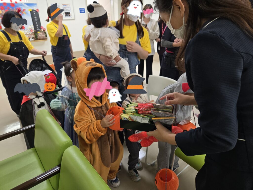 かわいいおばけやお姫様の仮装に身を包んだ園児たちはかぼちゃ型の入れ物を持って、元気いっぱいの声で「トリック・オア・トリート!」🍬と、とびきりの笑顔で訪問してくれました。