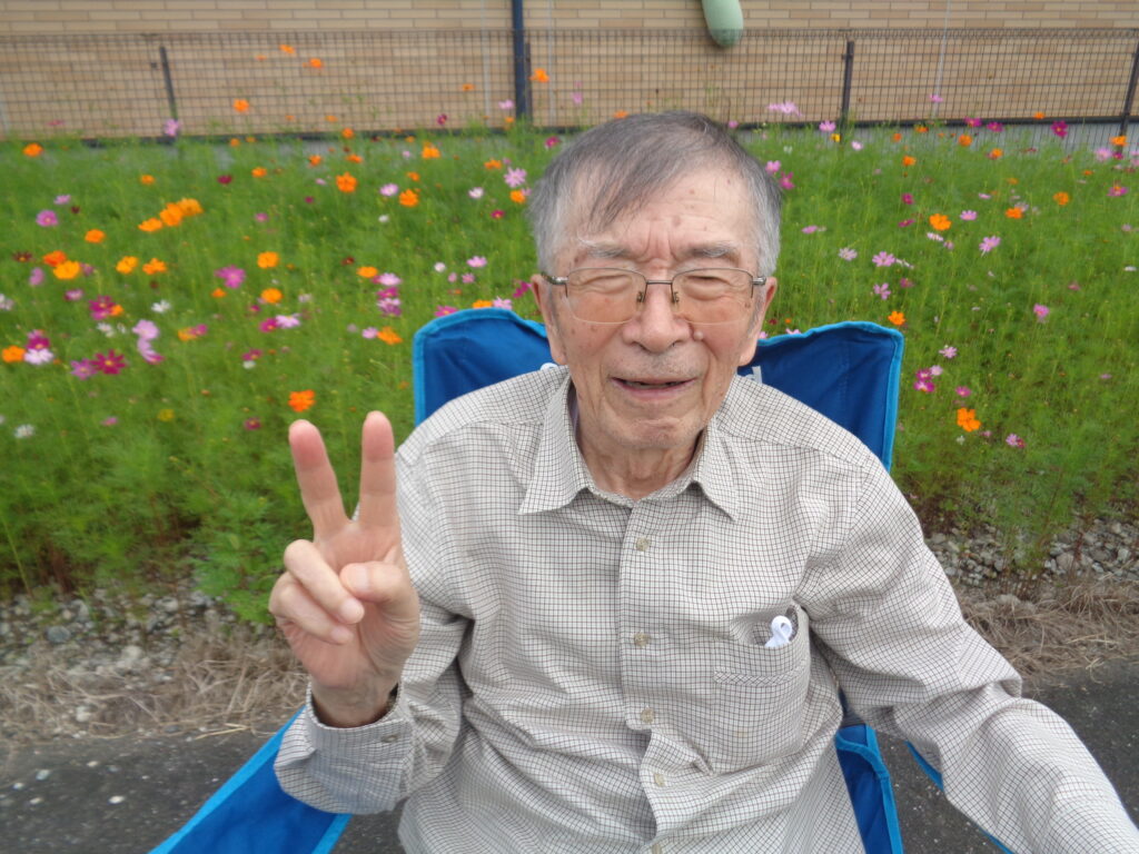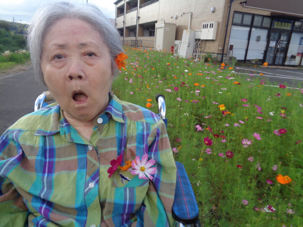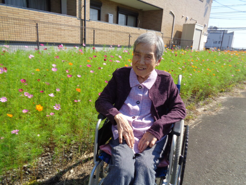 10月7日、本日は津古駅の先の川沿いに咲いている秋桜を見学しようと、皆様で外出しました。天候に恵まれ過ぎて気温が高く、長時間は滞在できませんでしたが、秋桜を見学され季節の移ろいを皆様に感じて頂けたのではと思います。