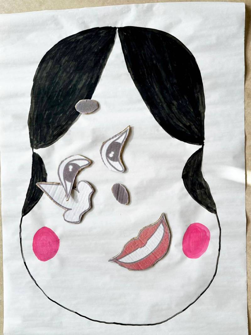 パーツは狙い通りにいくこともあれば、予想外の場所に着地することもあり、完成した顔はどれも個性豊か。左右の目の高さが大胆に違ったり、口が上のほうにあったりと、まさに“アートなお顔”が次々に誕生しました。