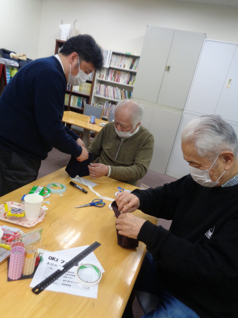 今年に入ってから二回目のOKカフェ。今回は縫わないバック作りました。