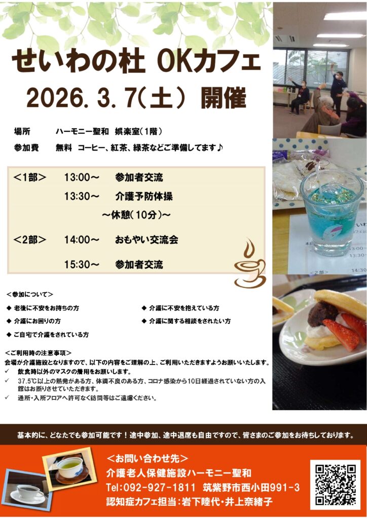 せいわの杜 OKカフェ(認知症カフェ)の取り組み|医療法人せいわ会/介護老人保健施設 ハーモニー聖和 (seiwa-kai.com)
